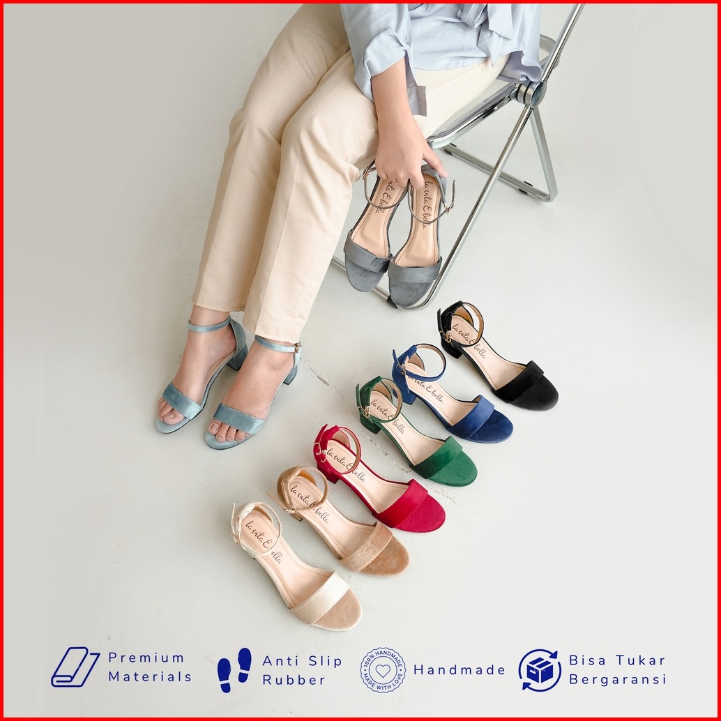 La Vita E Bella Blanche Ankle Strap Sandal Block Heels Wanita Model Tali Lv2005