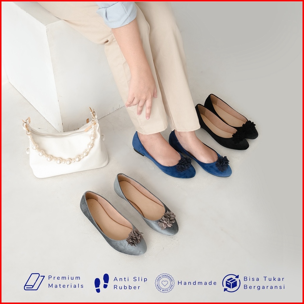 La Vita E Bella Dahlia Ballerina Flat Shoes Pita Bunga Empuk Dan Lembut - Lv1261