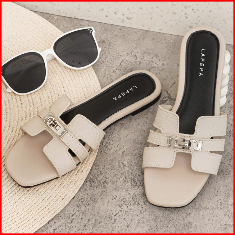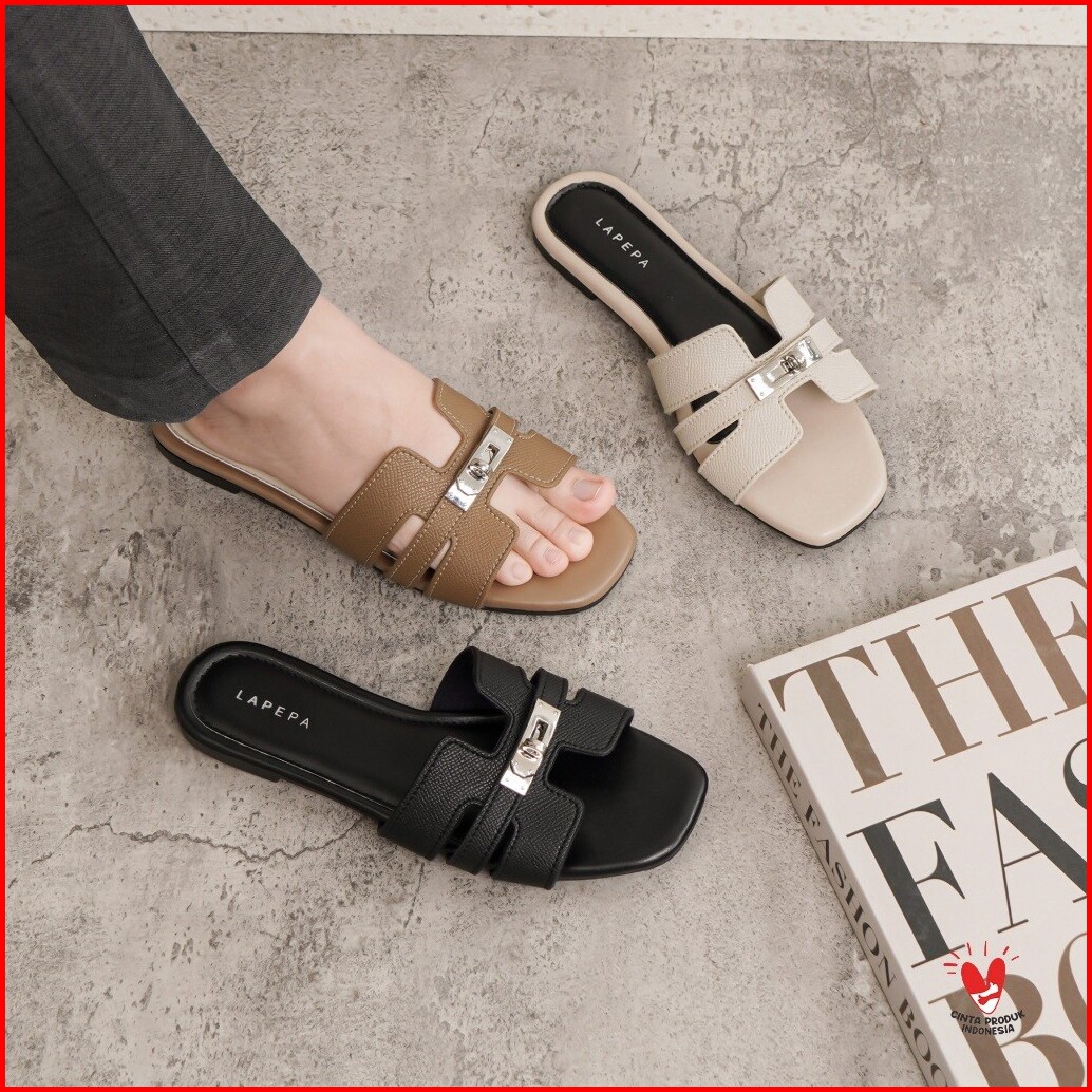 Lapepa Yuk - Blow Sandal Wanita Teplek Korea Casual Size 36 - 40 Sendal Slop Empuk Flat Cewek Kasual Rumahan Warna Cream