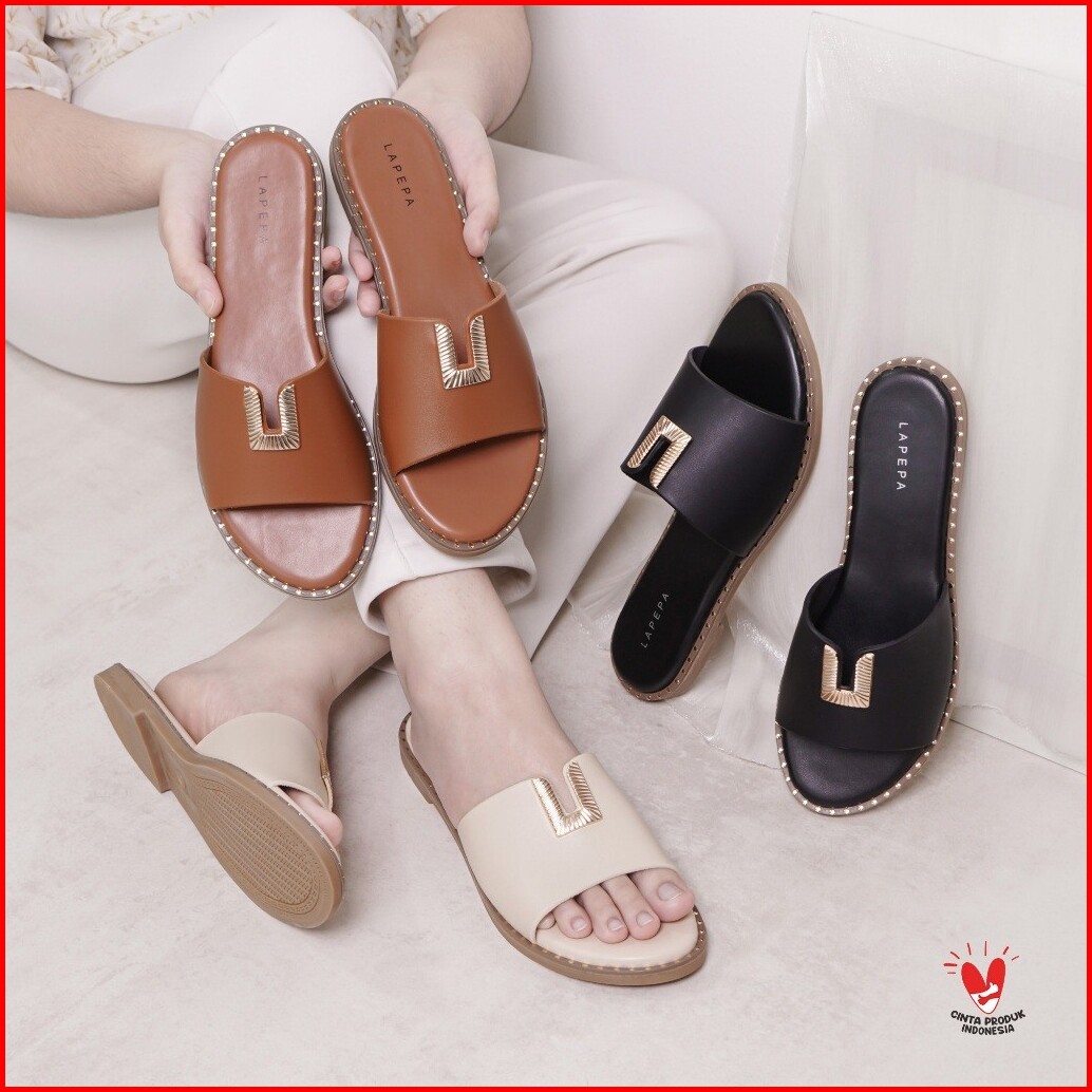 Lapepa Yuk - Olivia Sandal Wanita Teplek Korea Casual Premium Size 36 - 40 Sendal Slop Empuk Flat Cewek Kasual Rumahan W