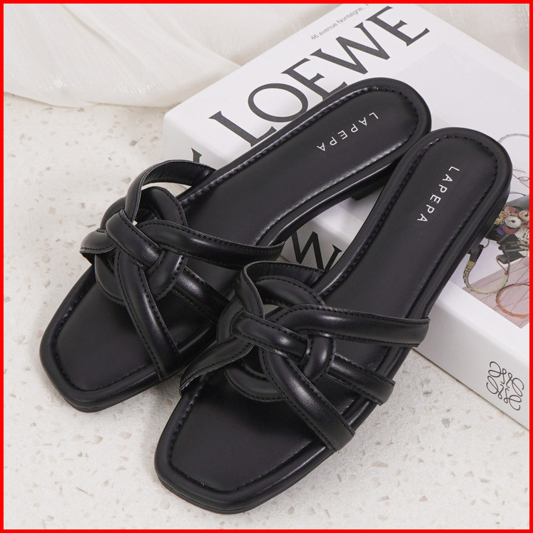 Lapepa Yuk - Evelyn Sandal Wanita Teplek Korea Casual Premium Size 36 - 41 Sendal Slop Empuk Flat Cewek Kasual Rumahan W