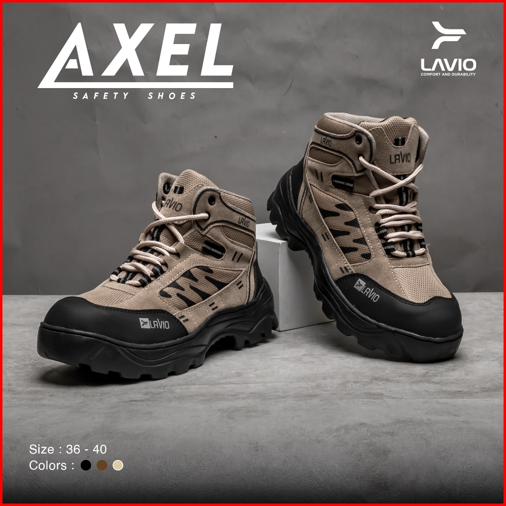 Sepatu Safety Pria Keren Lavio Axel Sefty Ujung Besi Steel Toe Cap Outdoor Gunung Hiking Trekking Adventure Best Quality
