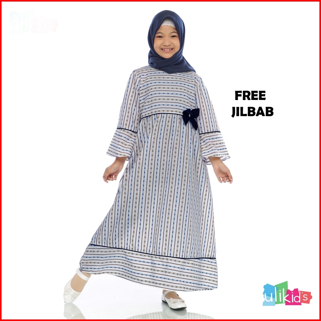 Ulikids Gamis Anak Baju Anak Perempuan Motif Garis Dan Pita Bahan Katun Premium Free Hijab