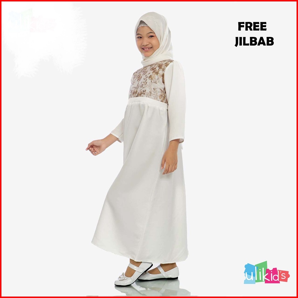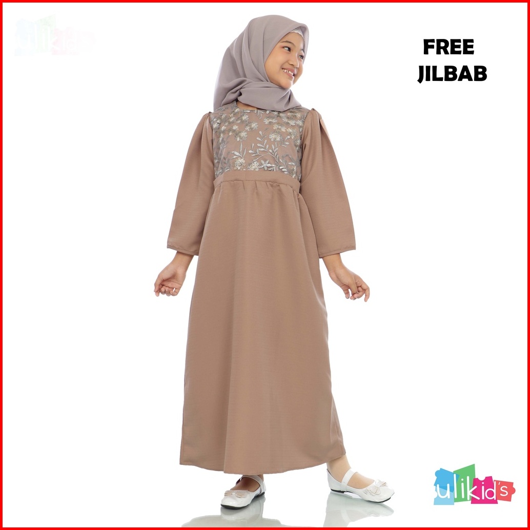 Ulikids Gamis Anak Perempuan Motif Brukat Bordir Bahan Baloteli Premium Promo Free Hijab