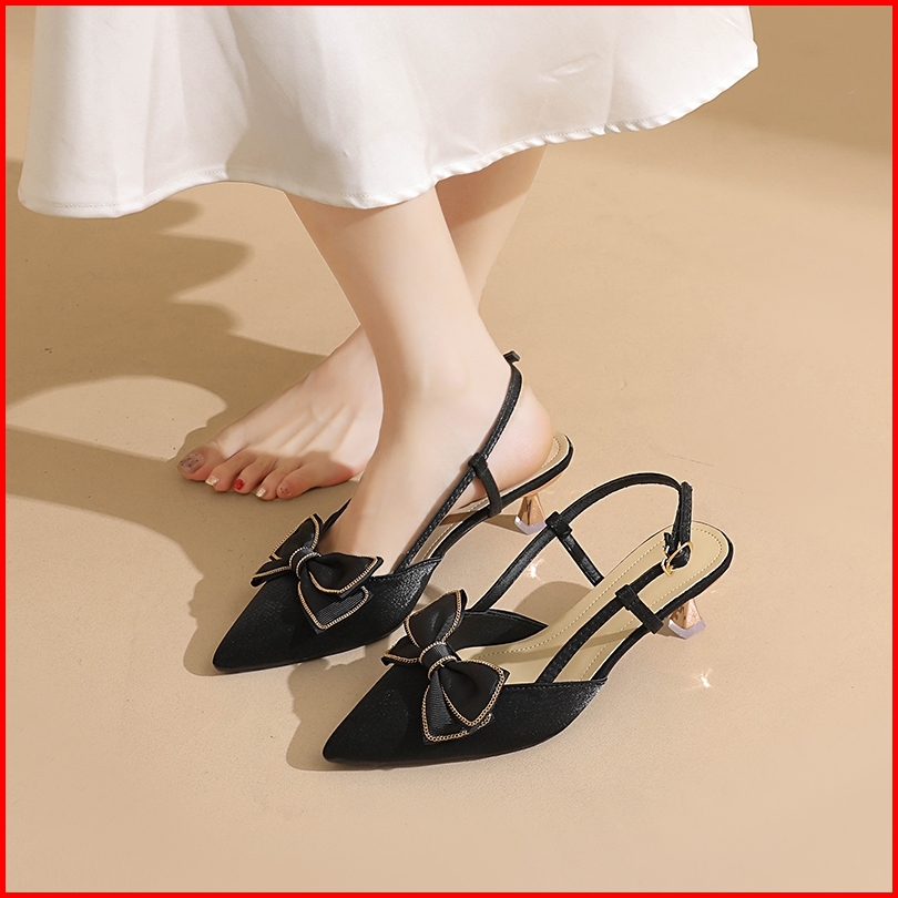 Venalisa Heels Wanita Elegan Pita Kulit Runcing Fashion 5cm Untuk Hadiah Pesta Wisuda Anak Perempuan