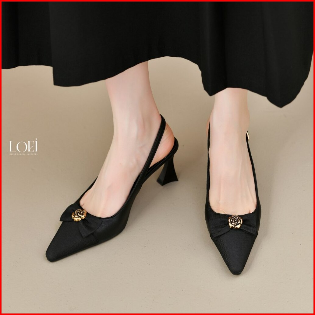 Loei Evelyn High Heels Wanita Elegan Party Aksen Bunga Pita C11