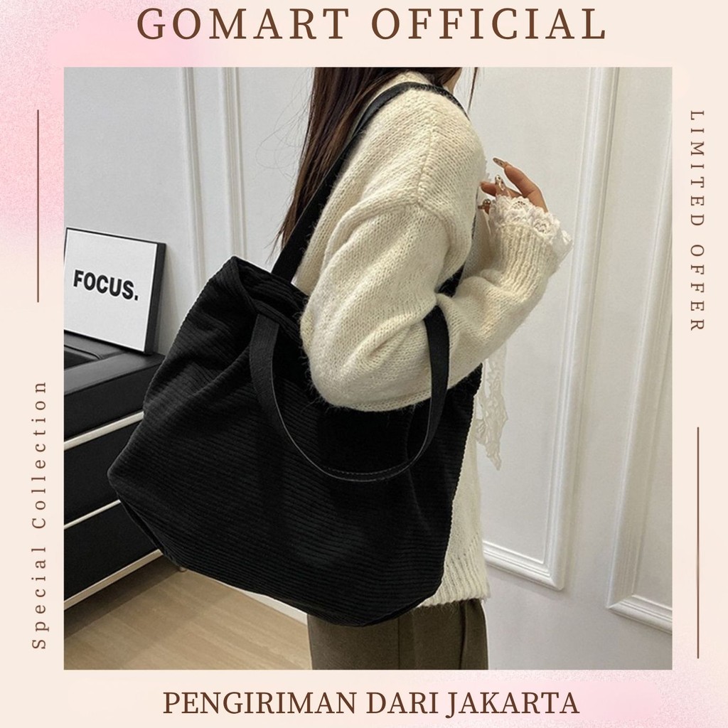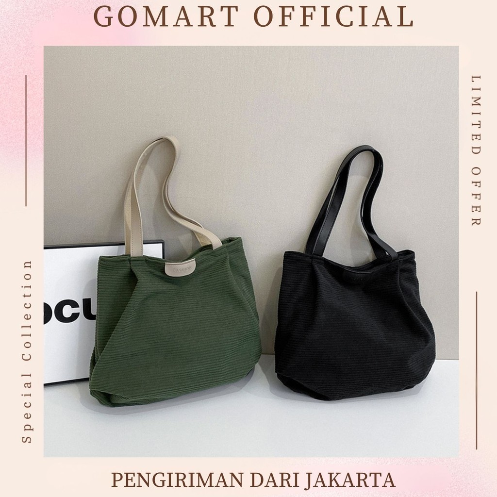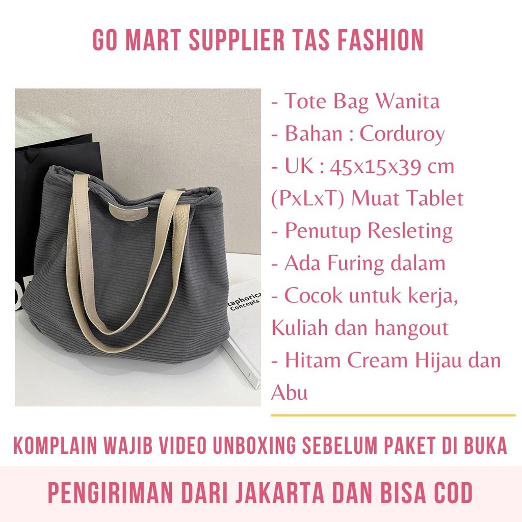 Tas Tote Bag Corduroy Wanita Import Viral Korea Style Terbaru Tas Bahu Wanita Kekinian TE18