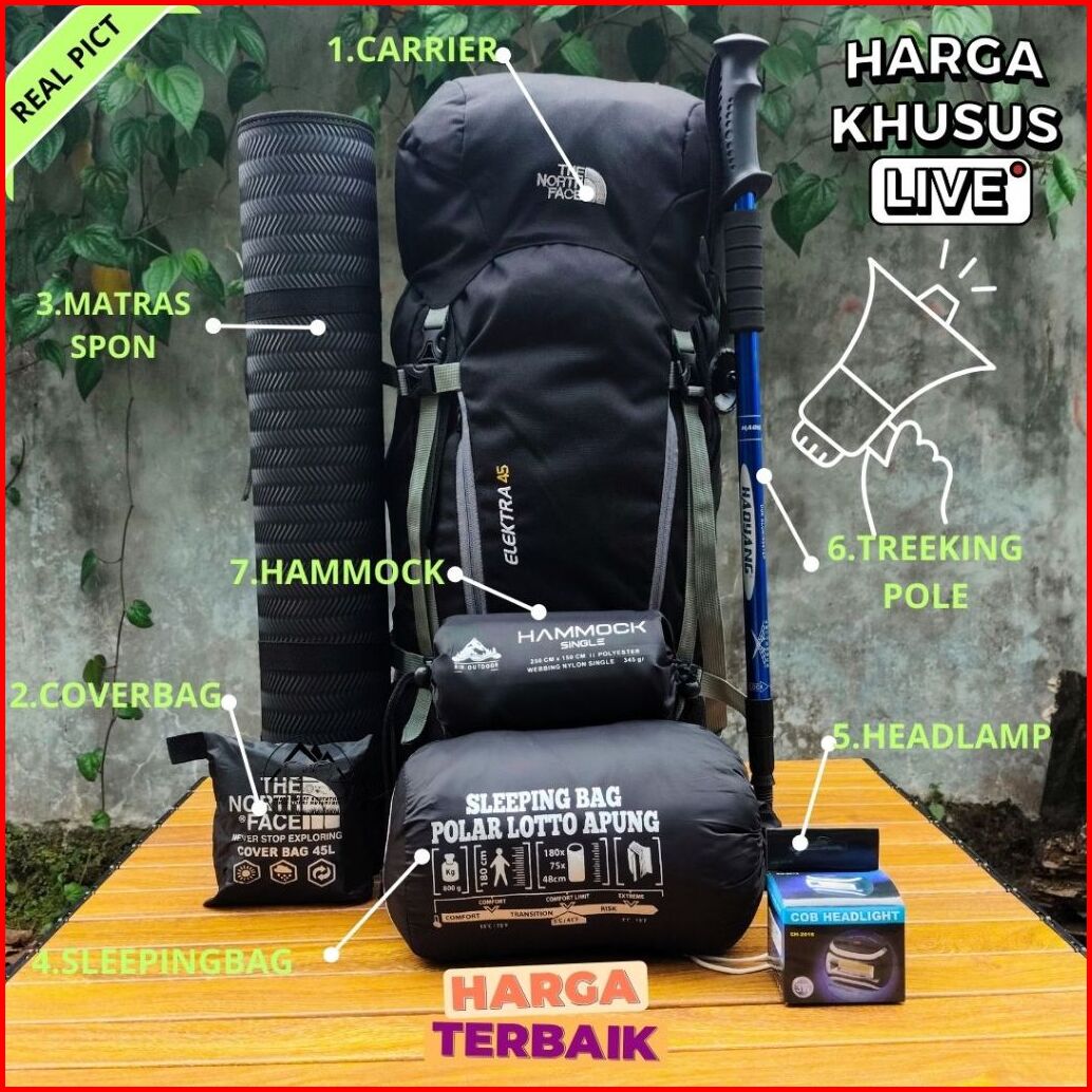 Paket Lengkap Camping 4 5 6 7 Item Tas Ransel Gunung Carrier 45 Liter Dan 60l Tas Pendaki Gunung Hiking