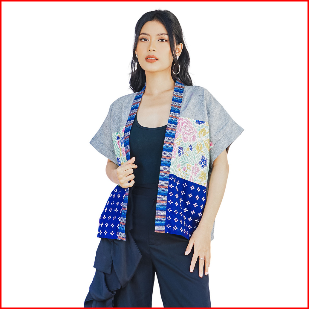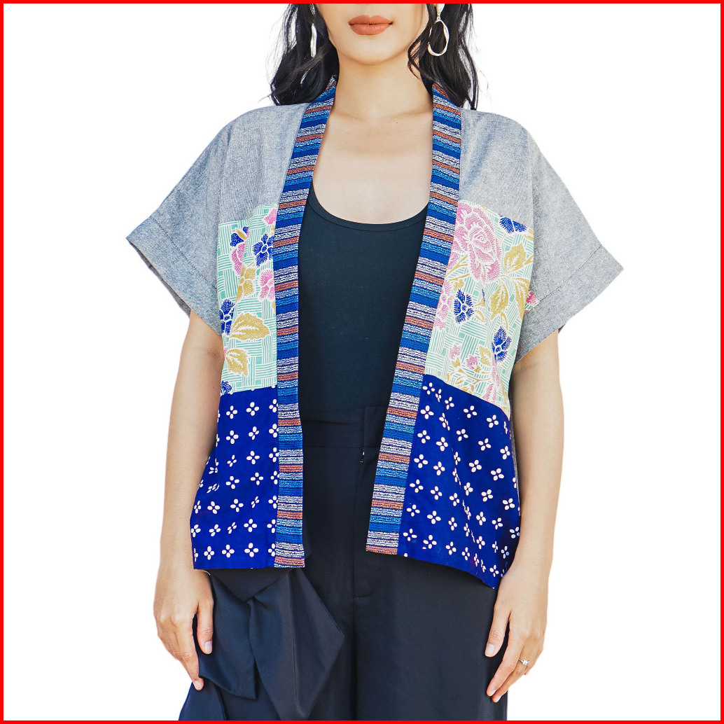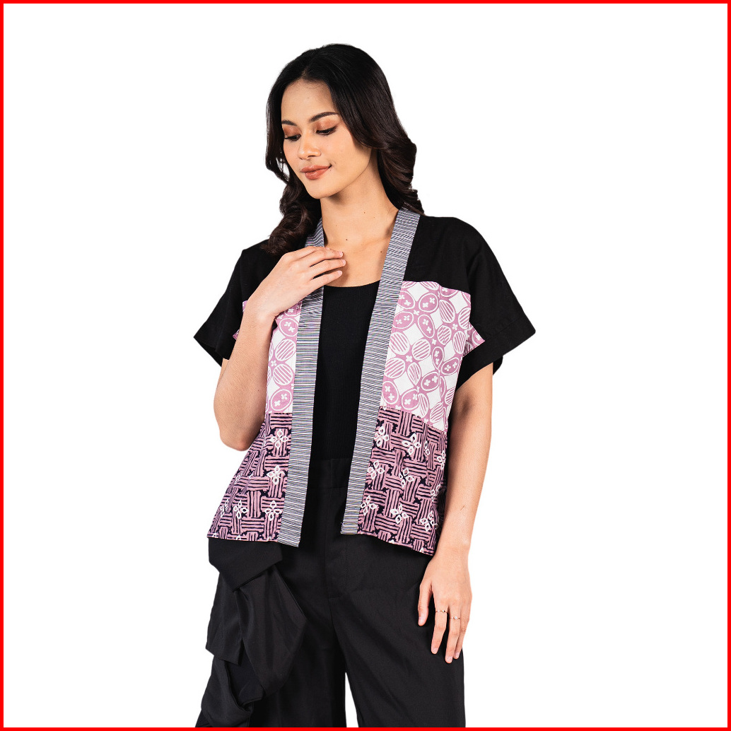 Blazer Batik Wanita - Atasan Batik - Bhatara Batik Mikata - Outer Batik Modern Lengan Pendek
