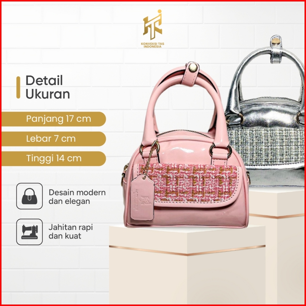 Kti Tas Verona Tweed Selempang Mini Kombinasi Bahan Kulit Pu Desain Compact