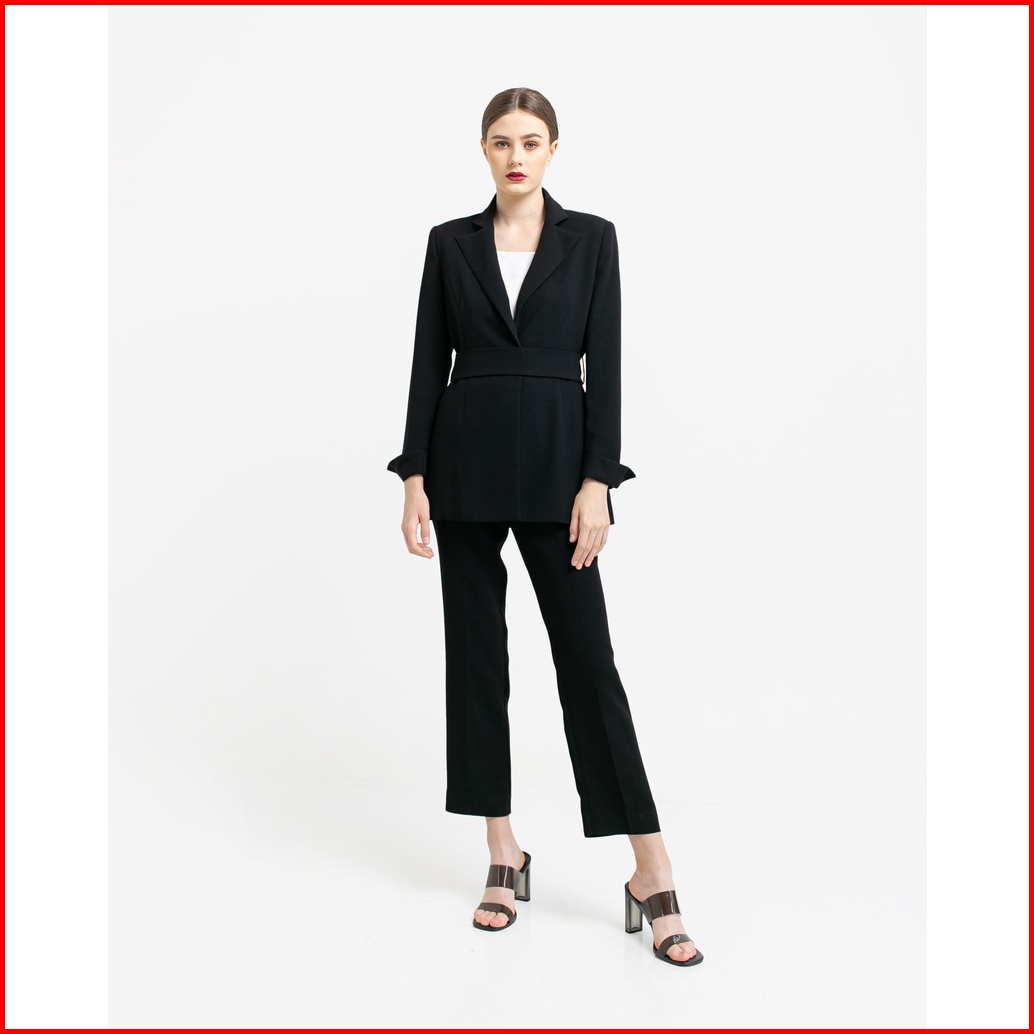 Invio Kirsten Belted Cape Blazer Black Jas Wanita