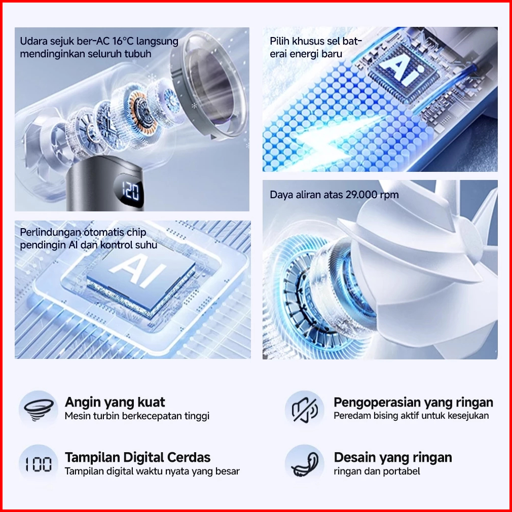 Kipas Angin Berkecepatan Tinggi Genggam 19m S Udara Dingin Yang Kuat Kipas Angin Turbo Kecepatan Variabel Tak Terbatas K