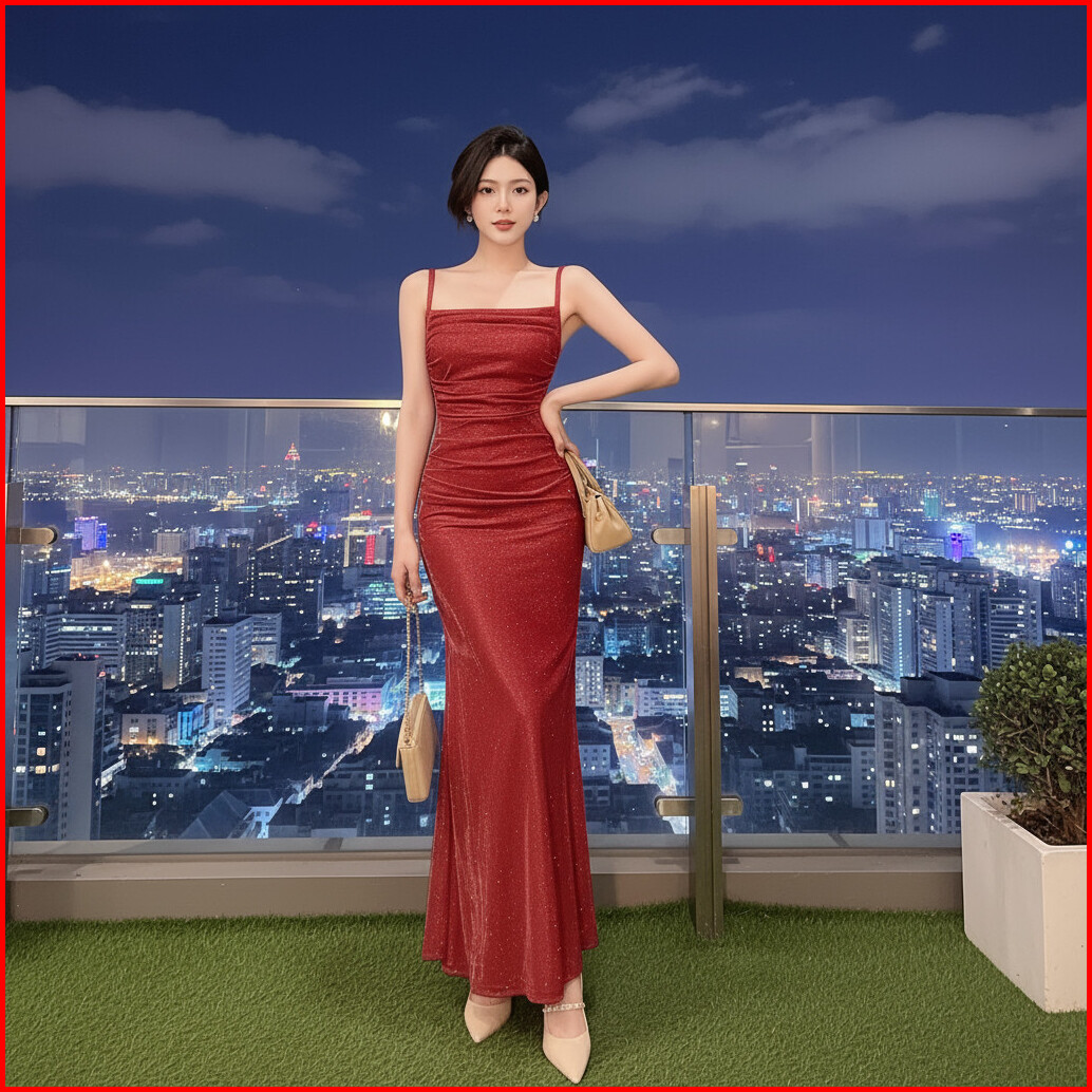 Miss Emita Long Dress Hitam Mewah Elegan Tanpa Lengan Natal Premium Biru Dress Party Night Club Terbaru 2025 Bodycon Dre