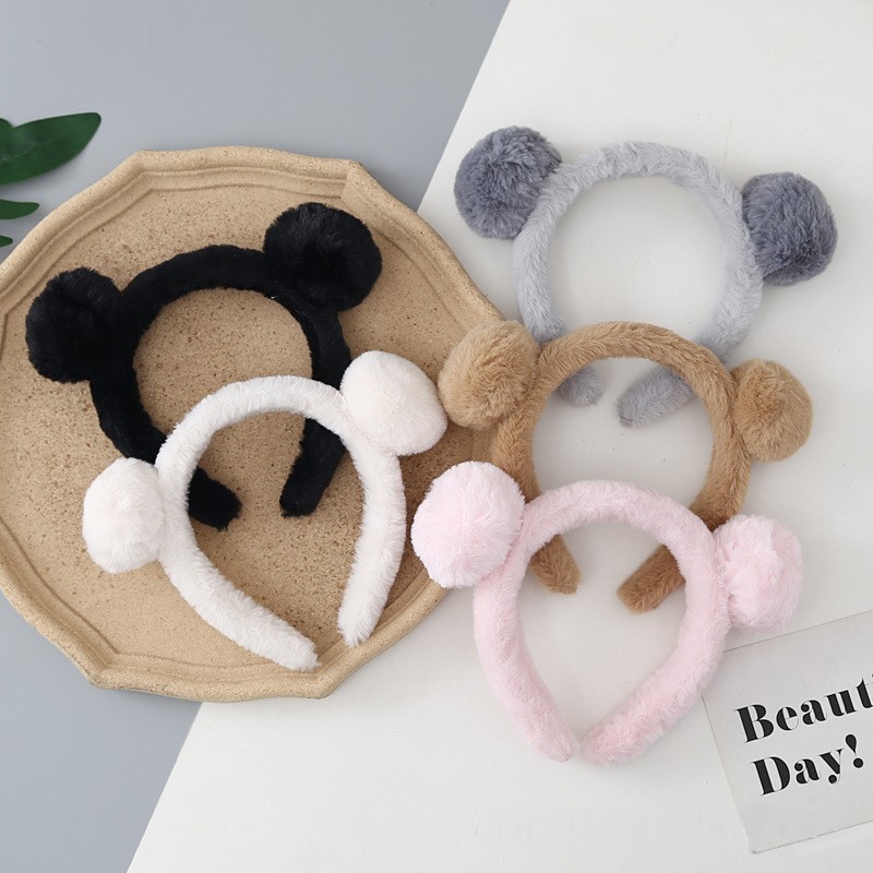 Bando Karakter Telinga Lucu Bahan Bulu Korea