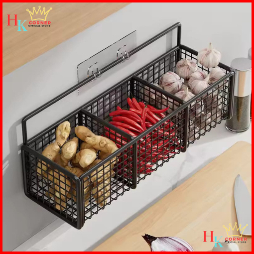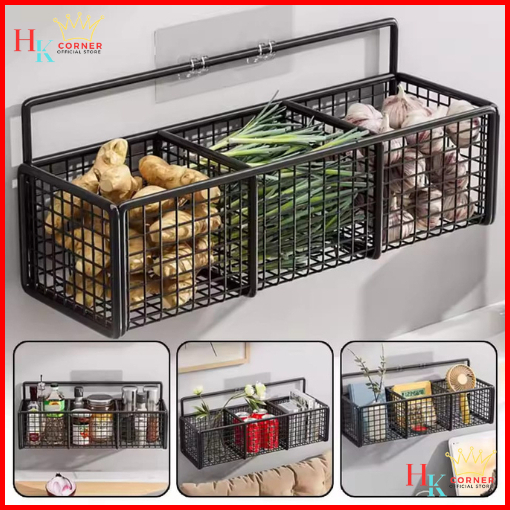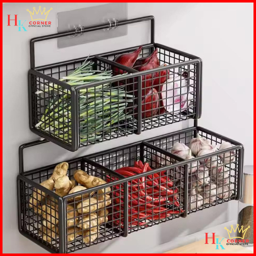 Hk Rak Keranjang Jaring Sekat Rak Bumbu Dapur Tempel Dinding Rak Keranjang Besi Serbaguna
