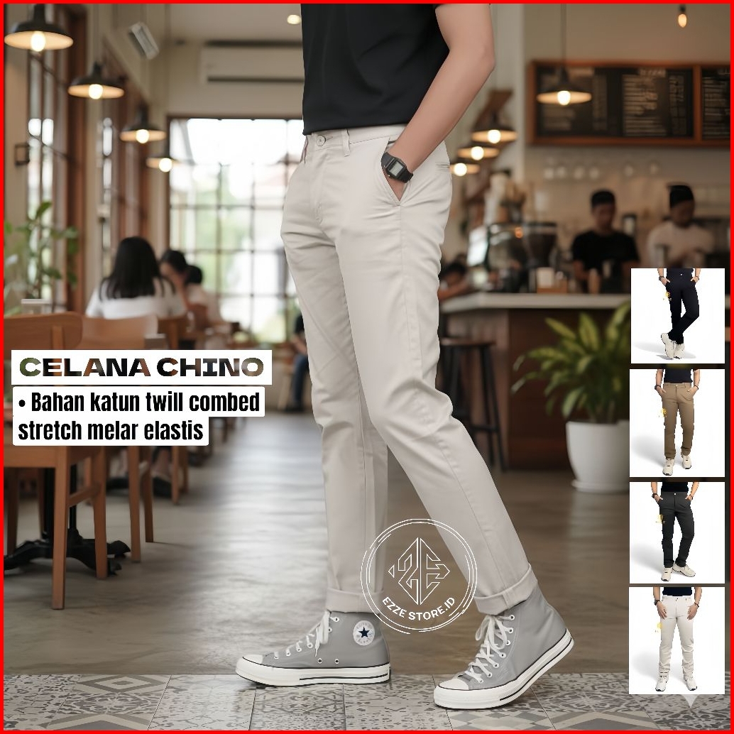 Celana Chino Panjang Pria Slimfitt Bahan Katun Combet Melar Elastis