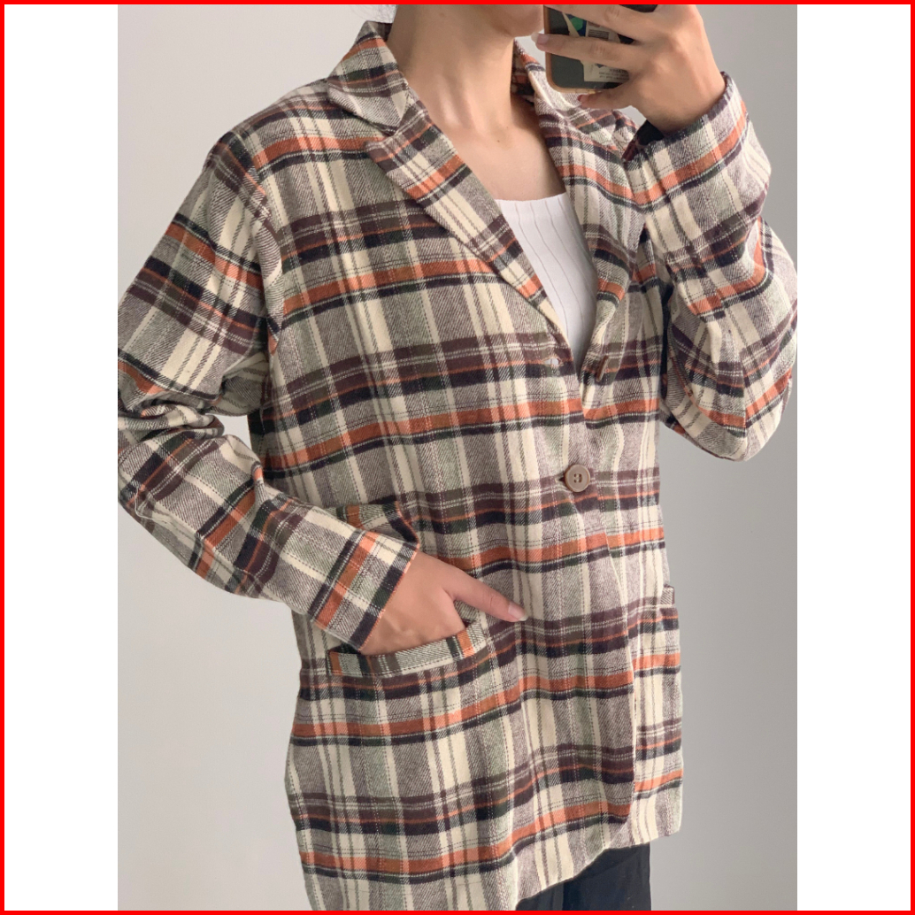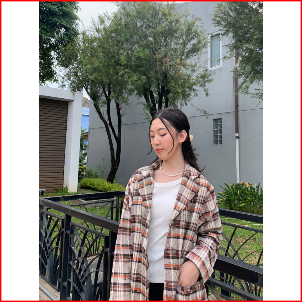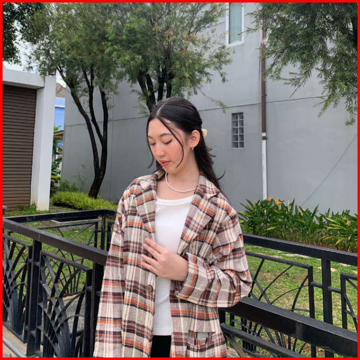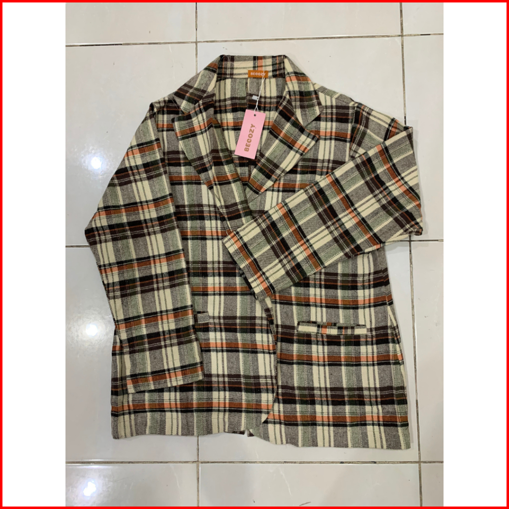Becozy - Blazer Outer Kotak Premium Quality Kancing Depan - Type Coklat Taylor
