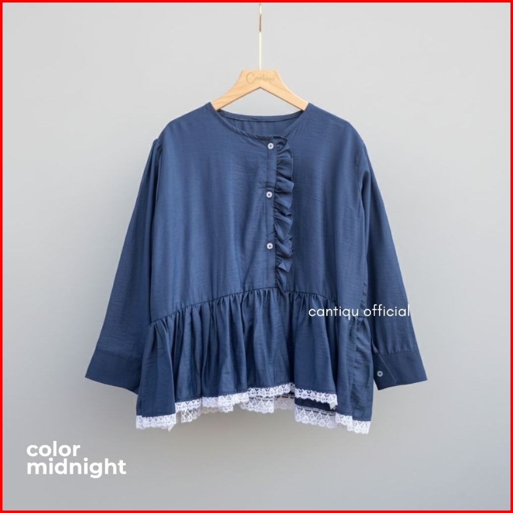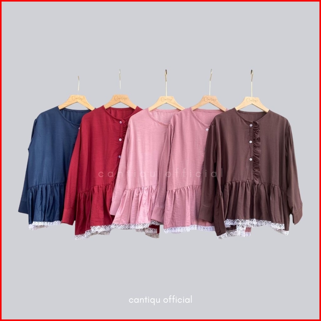 Cantiqu - Kimnara Blouse Atasan Wanta Ruffle Renda Bawah Bahan Pololinen