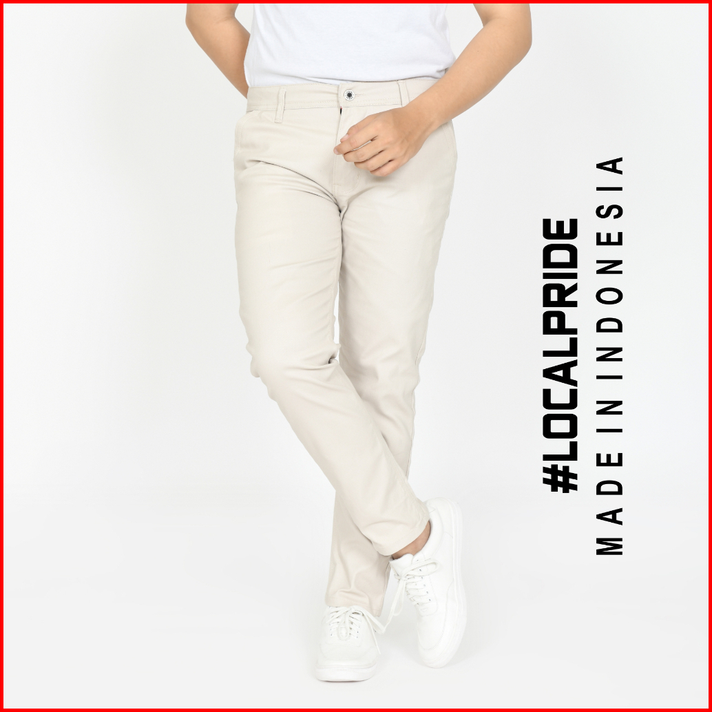 Izibro - Celana Panjang Pria Chinos Slim Fit Cream Skinny Stretch Melar Big Size Jumbo Tebal