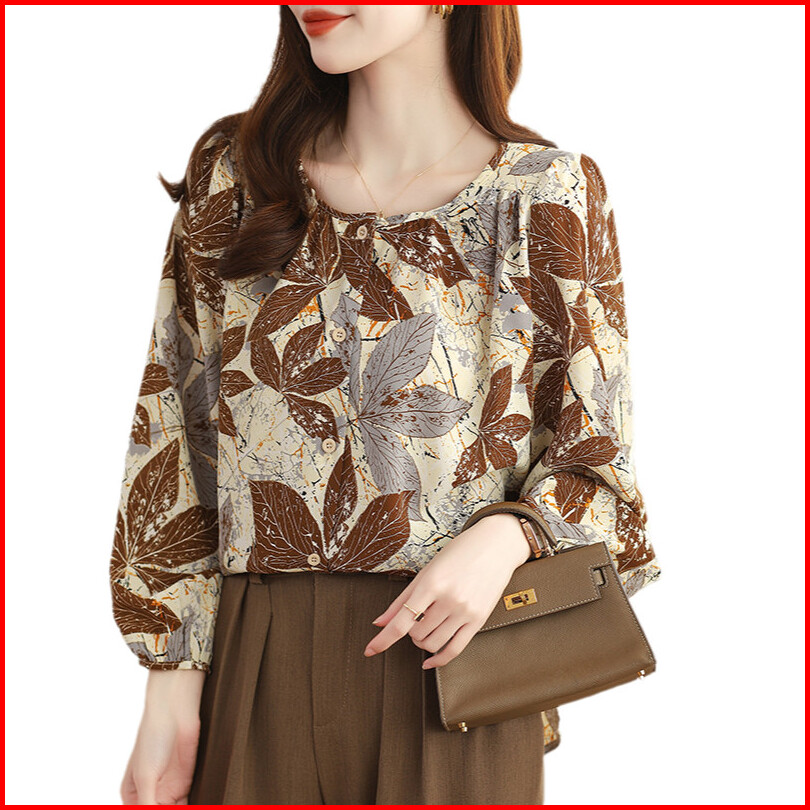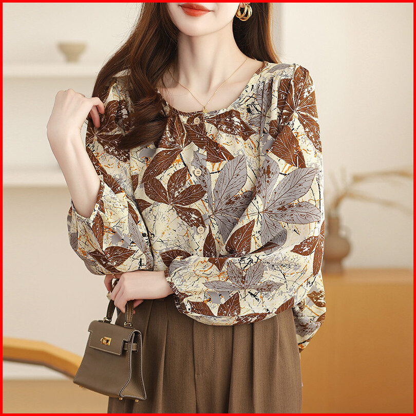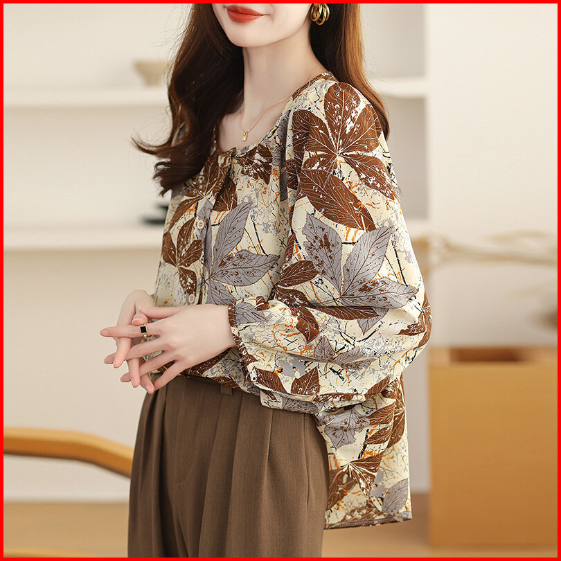 Bebovizi Khaki Casual Loose Long Sleeve Women Blouse Fashion Thai Shirt