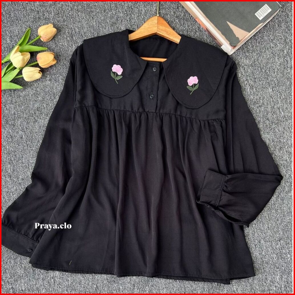 Praya.clo - Nathalie Blouse Bordir Kerah Renda Rayon Twill