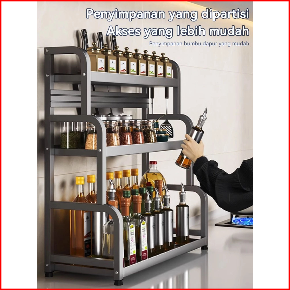 Homsaura Rak Bumbu Dapur Stainless Steel 2-3 Susun Rak Bumbu Dapur Estetik Rak Botol Bumbu Dengan Aksesoris