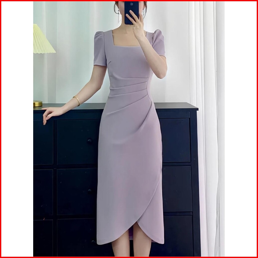 Yimita Midi Dress Hitam Press Body Panjang Wanita Party Dress Korean Style Aesthetic Baju Undangan Wanita Simple Pesta M
