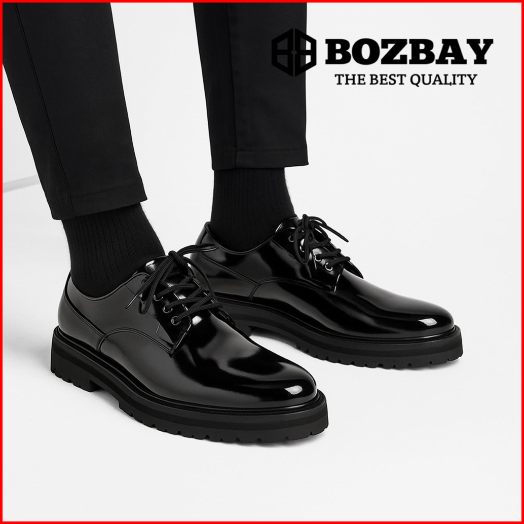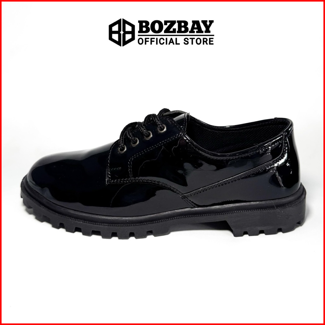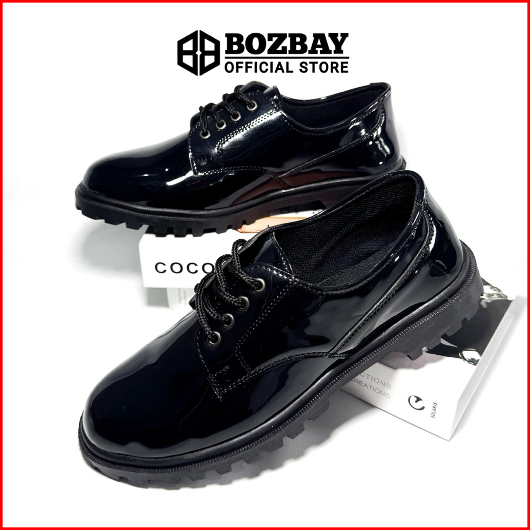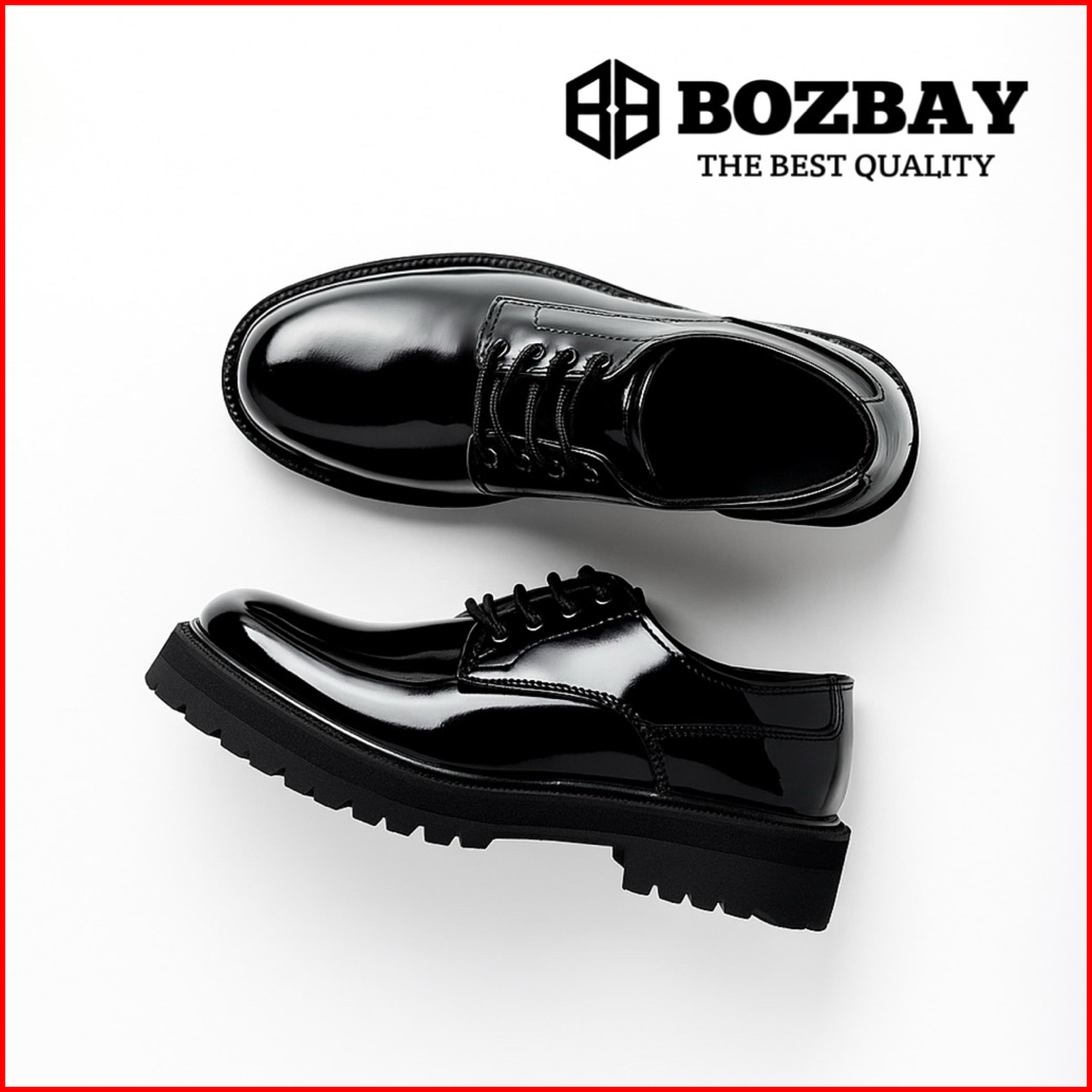 Bozbay Sepatu Formal Pria Hitam Glossy Pantofel Kerja Kantor Kuliah Kondangan Semi Kulit