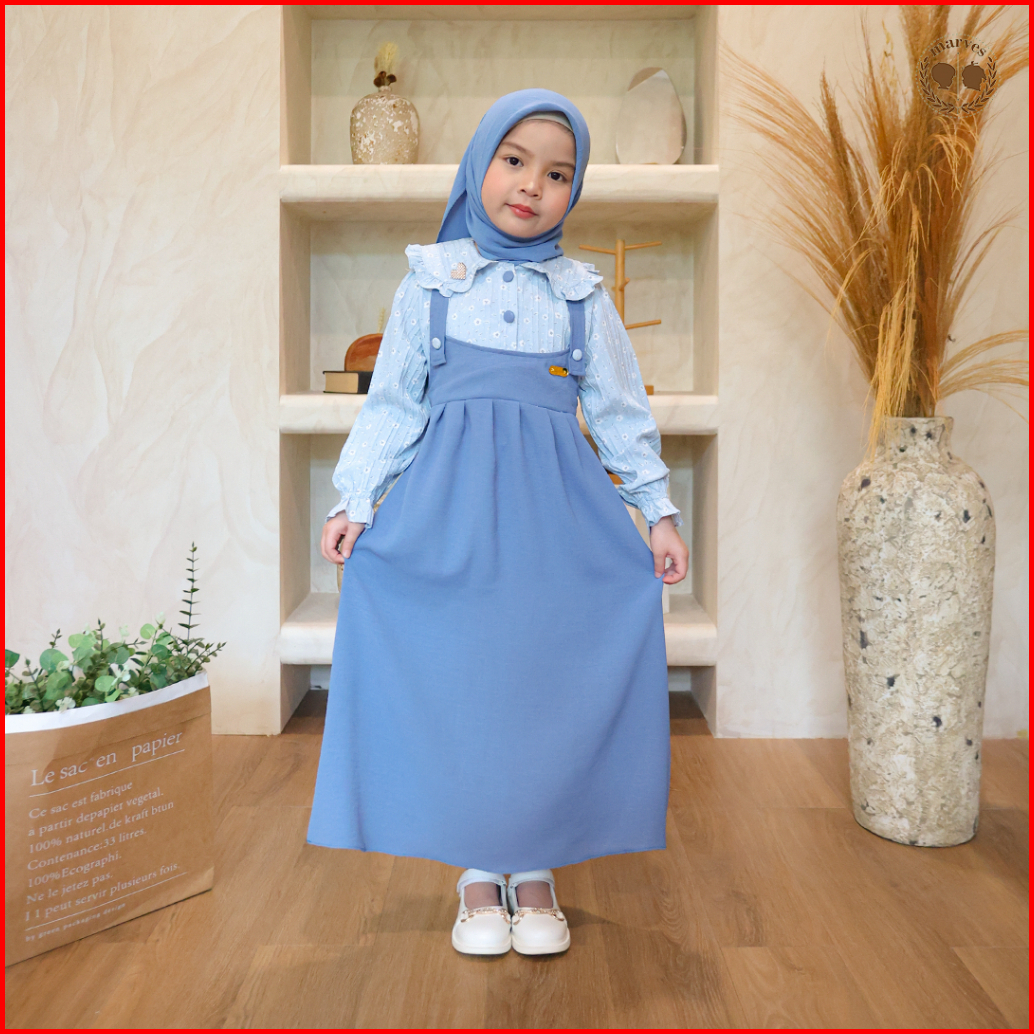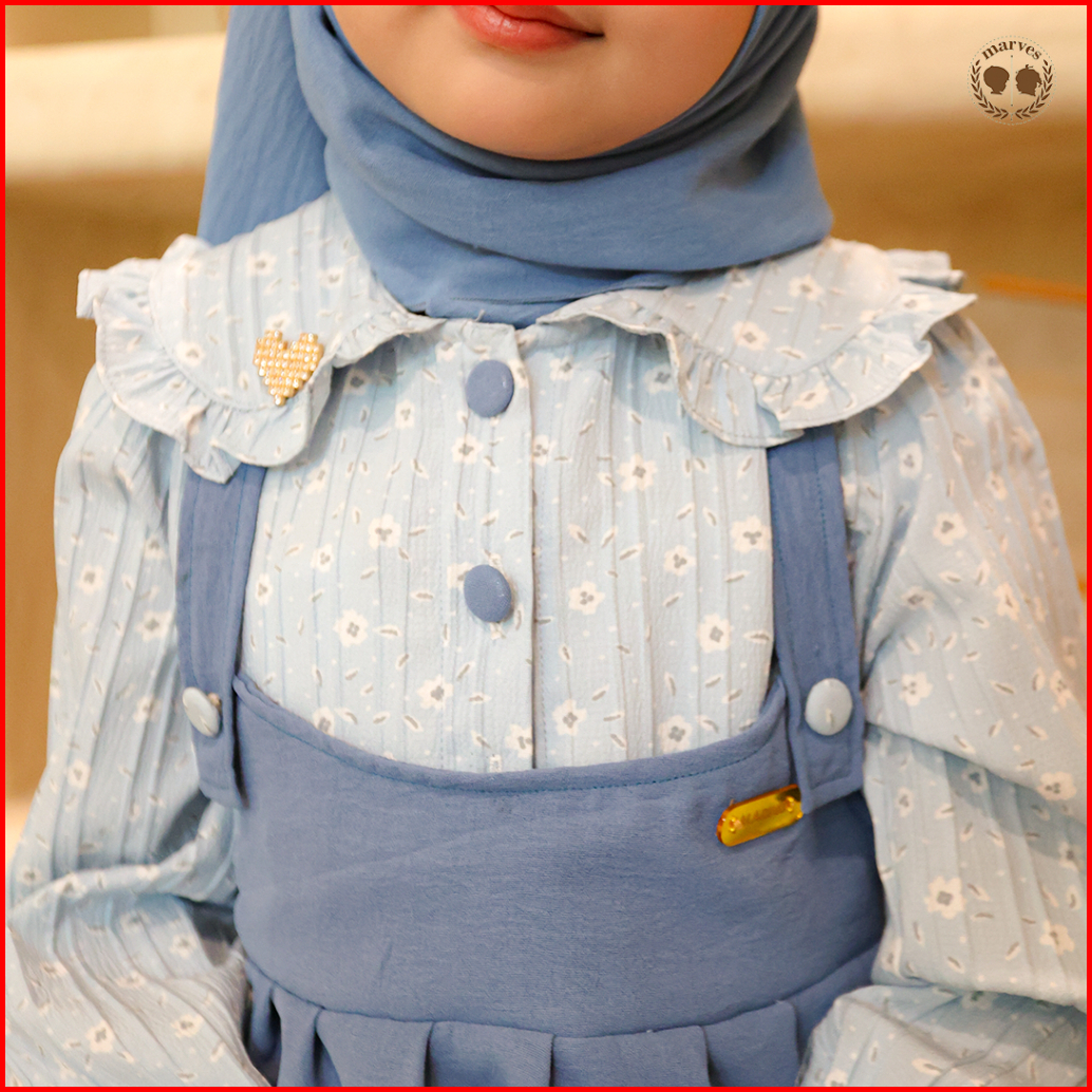 Marves Naila Gamis Baju Muslim Anak Perempuan Bahan Crinkle Motif Bunga Usia 2 Hingga 14 Tahun
