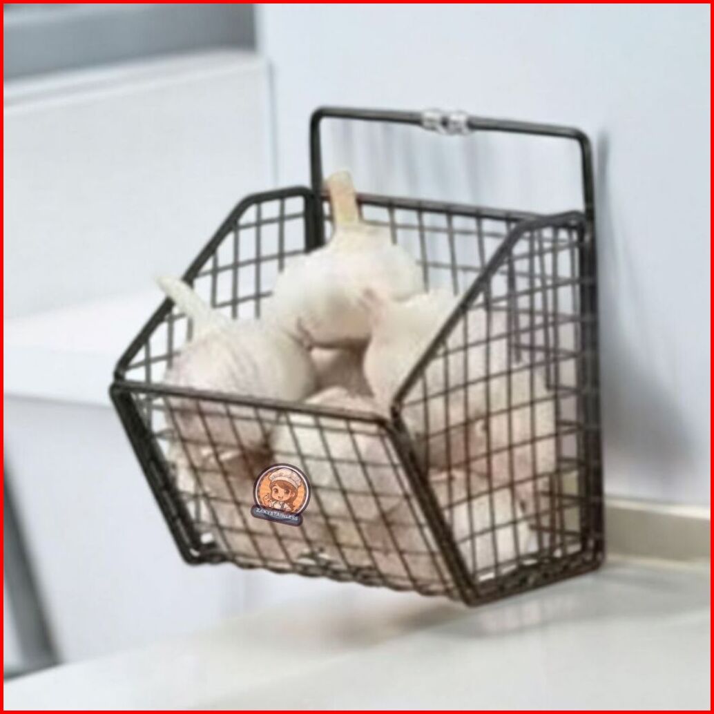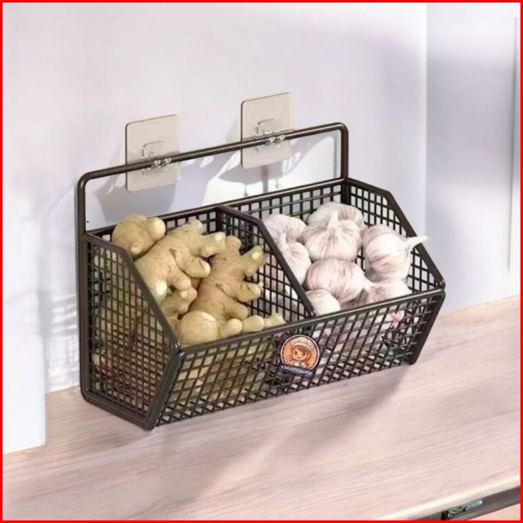 Rak Dapur Gantung Tempel Dinding Rak Penyimpanan Bawang Putih Tomat Jahe Cabe Rak Keranjang Dapur Besi