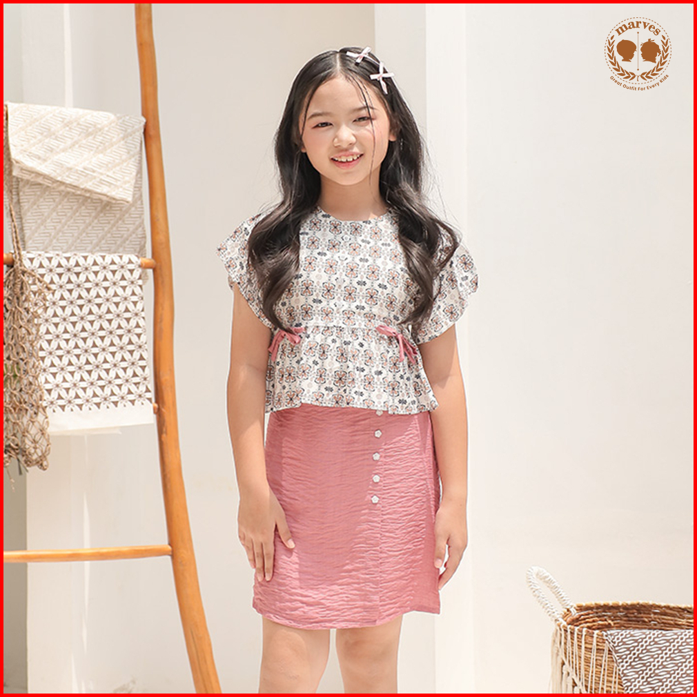 Marves Jieun Setelan Batik Asli Pekalongan Anak Perempuan Bahan Katun Batik Usia 1 Hingga 10 Tahun