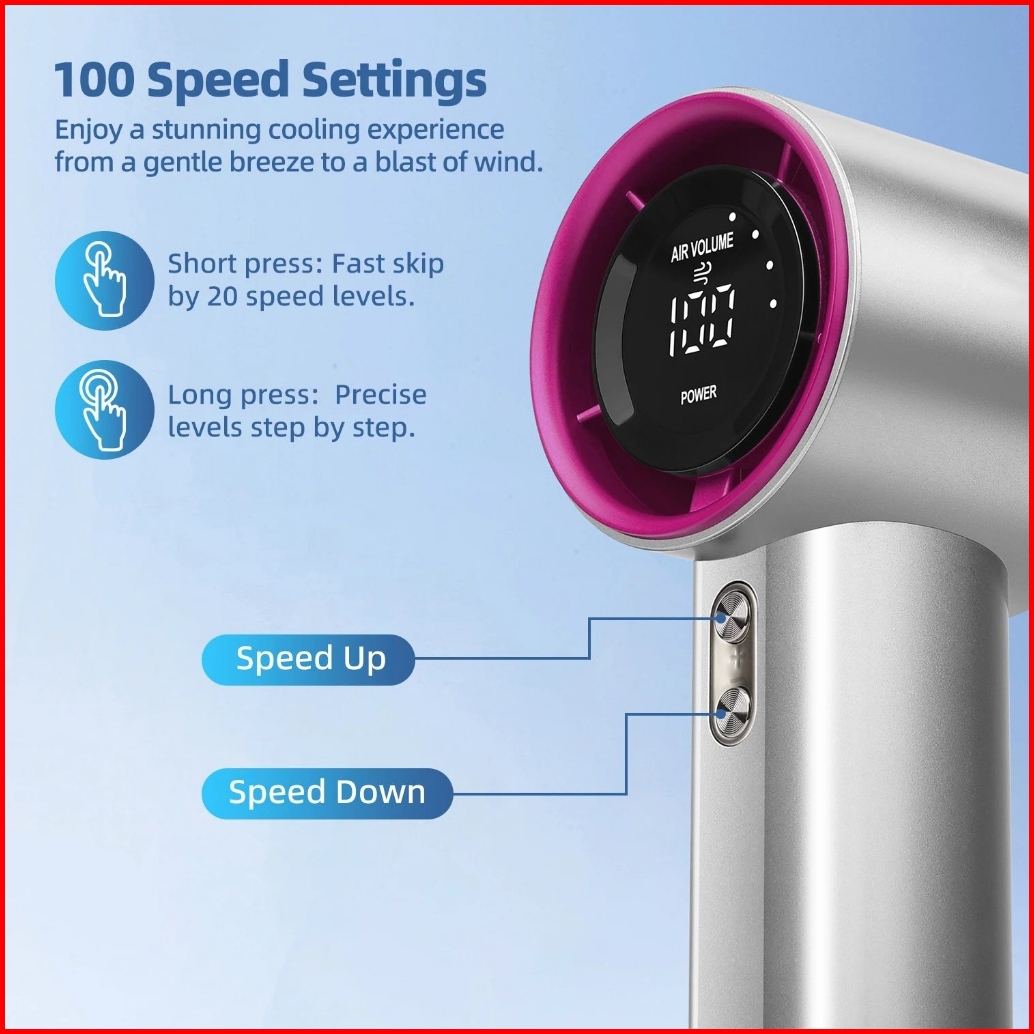Kipas Angin Portable Turbo High-speed Kipas 100 Gear Wind Kipas Angin Digital Display Adjustable Turbo Kipas 18000rpm Ki