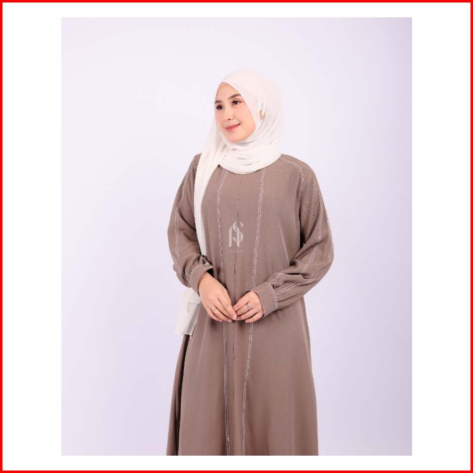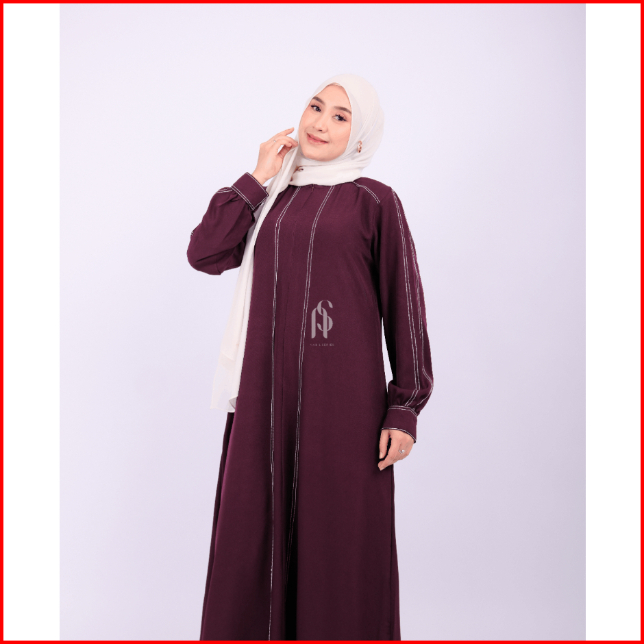 Nabil Series - Gamis Aureliya Wanita Burgundy Dress Muslimah Premium Detail List Modern