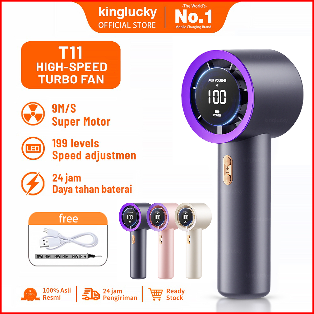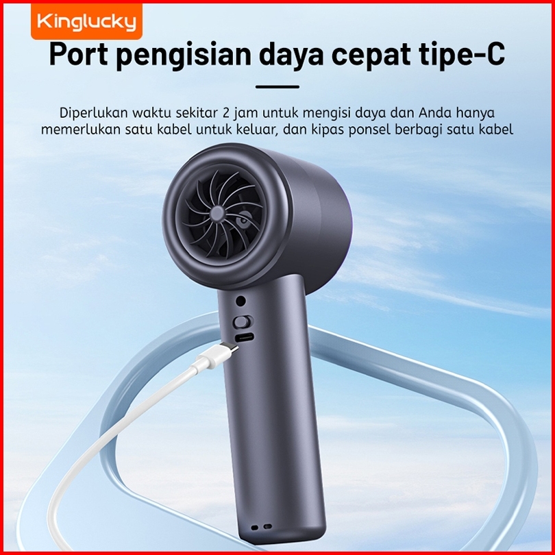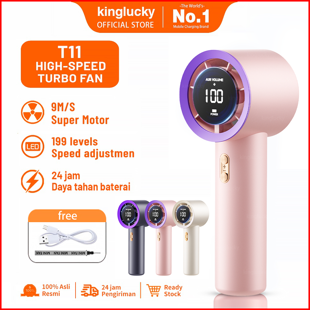 Kinglucky Mini Kipas Angin Portable Handheld Stand Up Desktop Fan Portable Strong 199 Wind Fan Digital Display Adjustabl