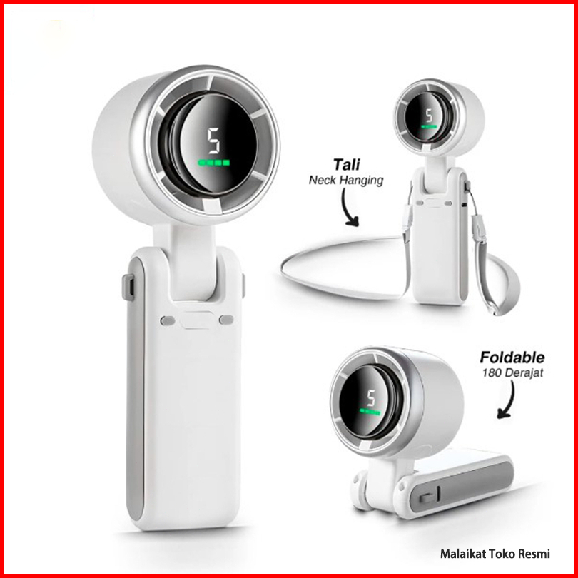 Kipas Angin Mini Portable Usb 40000 Mah 7w Dengan Tampilan Digital - Bisa Digantung Di Leher Ultra Senyap Untuk Kantor O