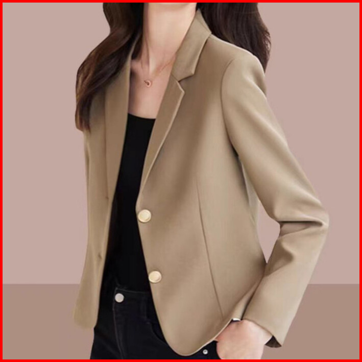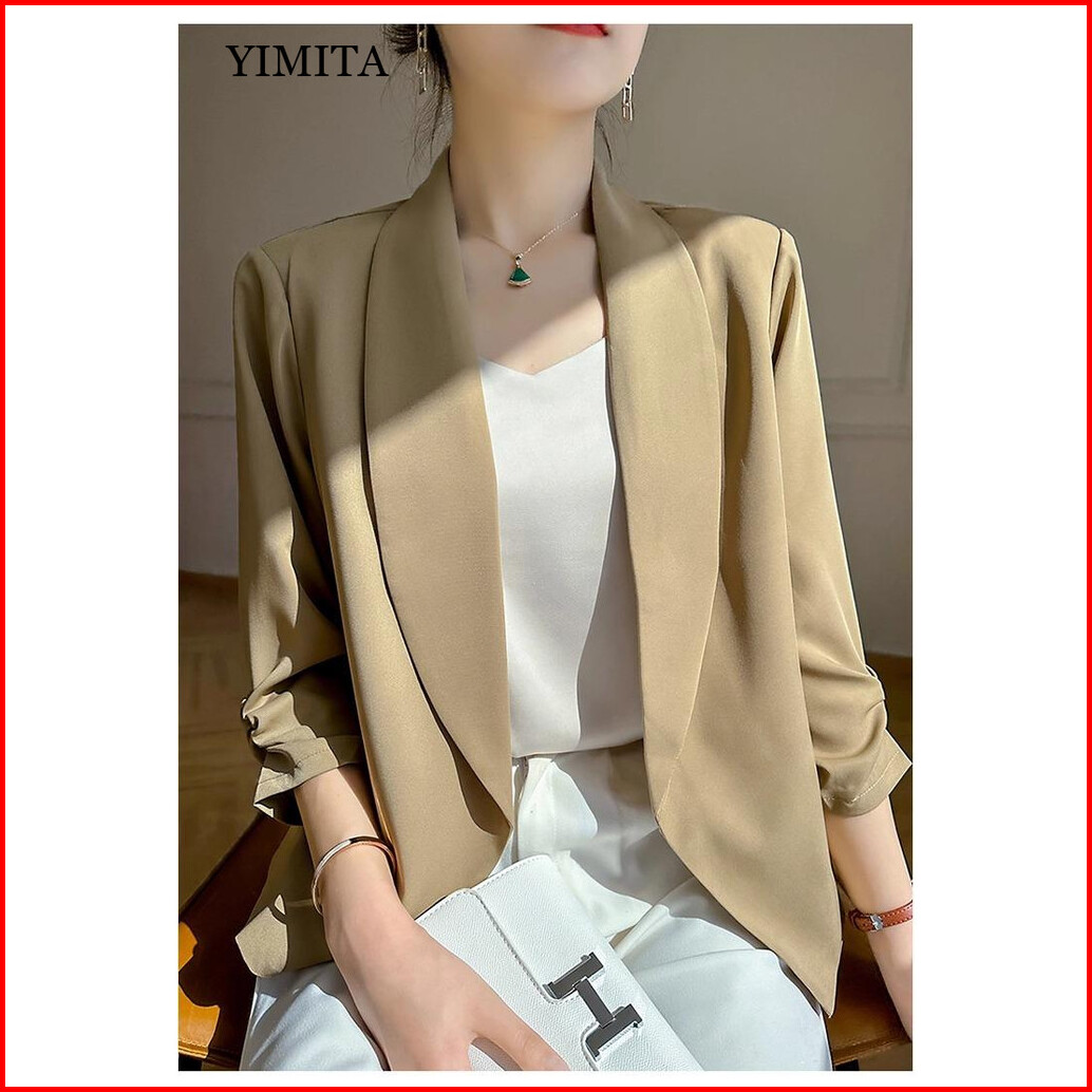 Yimita Korean Stylle Beige Wanita Slim Fit Khaki Blazer Women Office Commute Jacket Formal Casual Terbaru 2025 Import