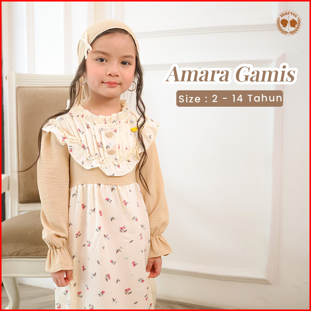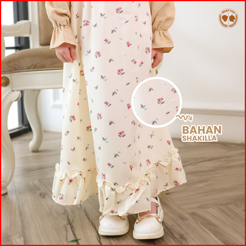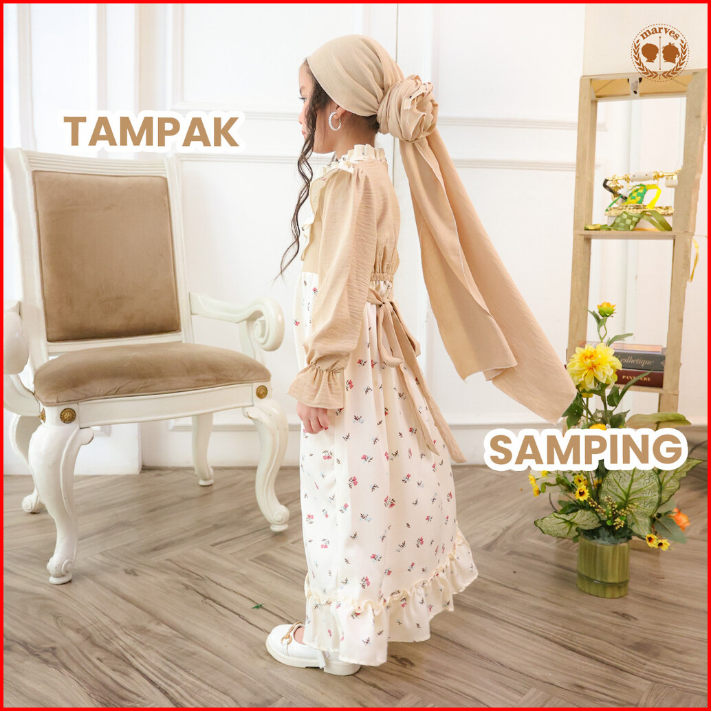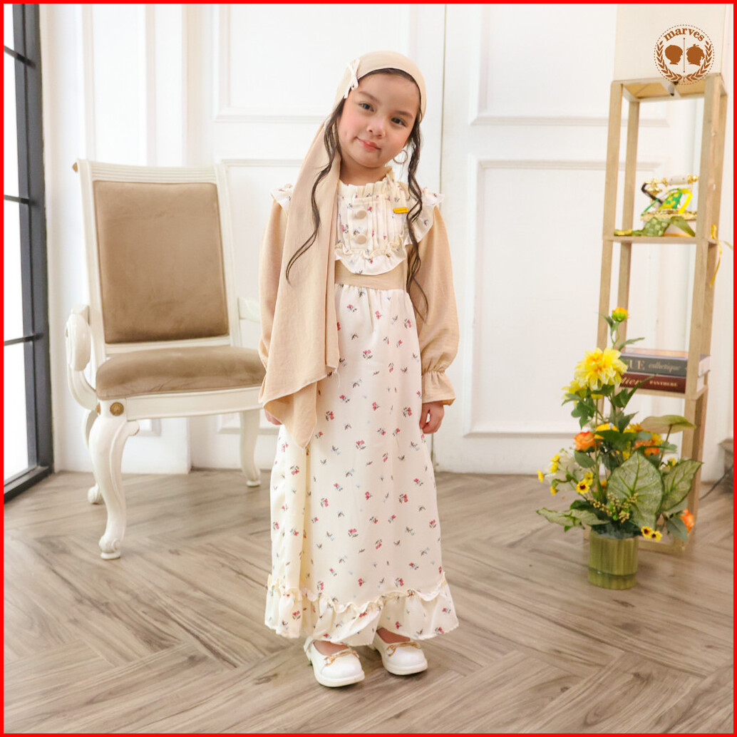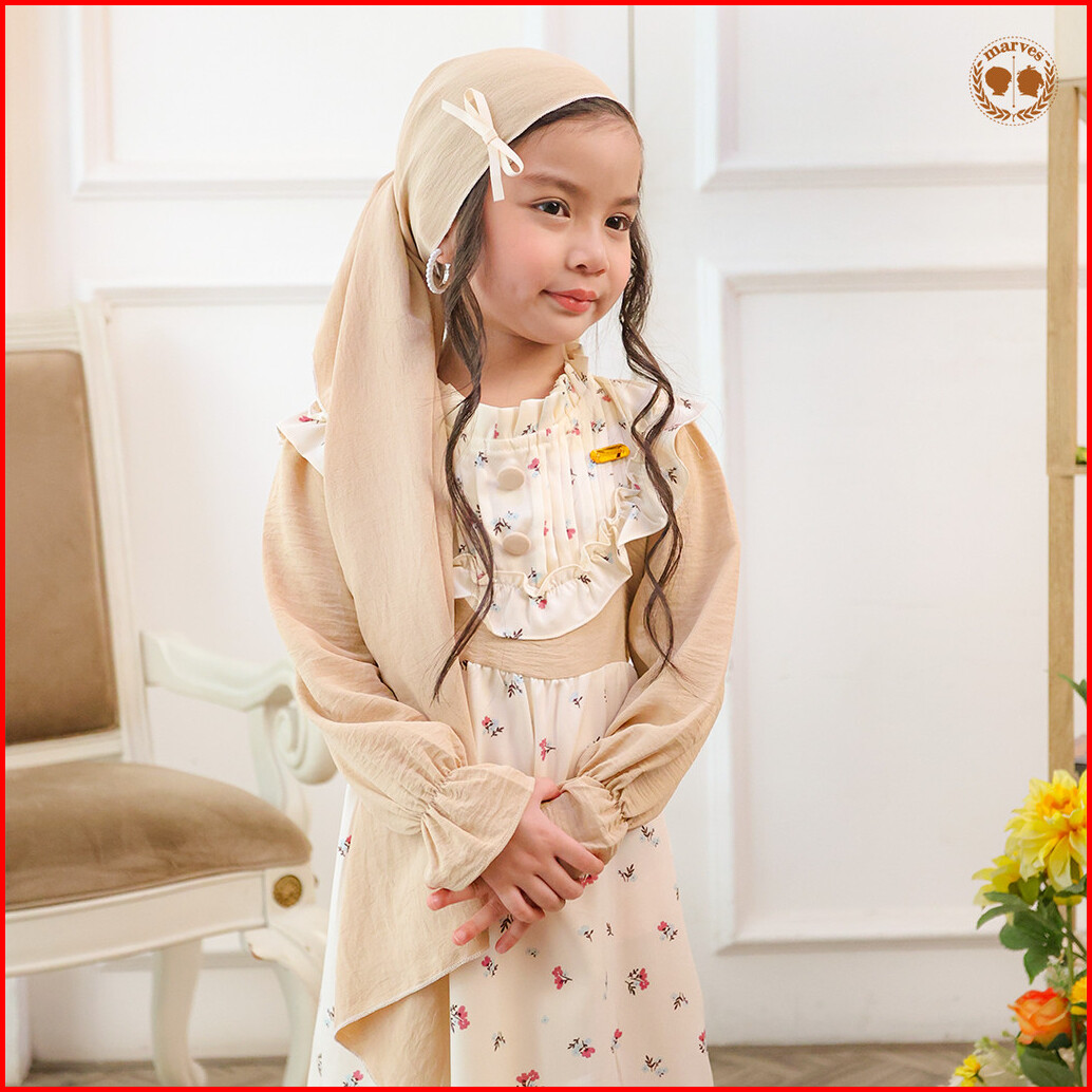 Marves Amara Gamis Baju Muslim Anak Perempuan Bahan Crinkle Motif Bunga Usia 2 Hingga 14 Tahun