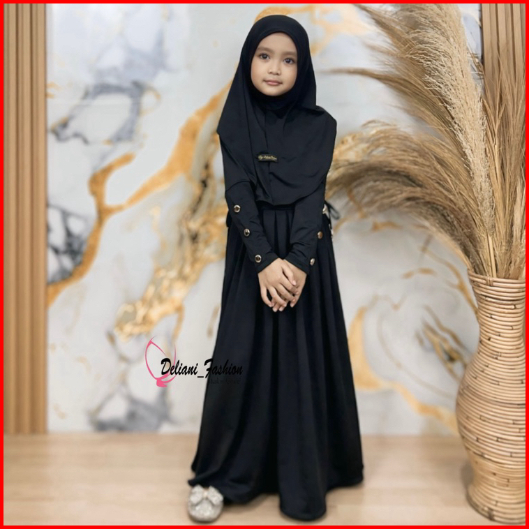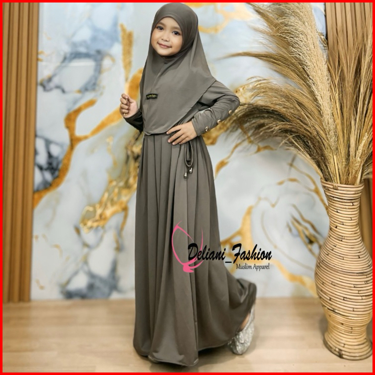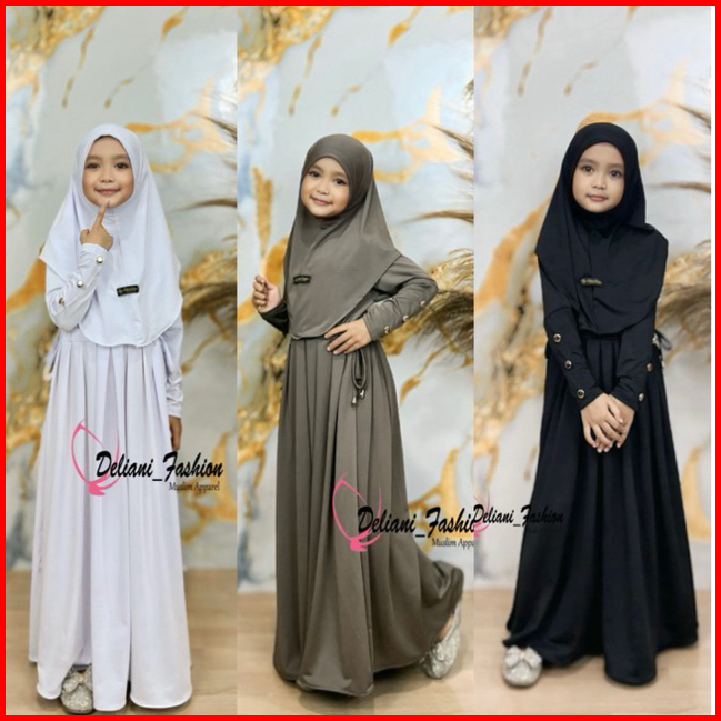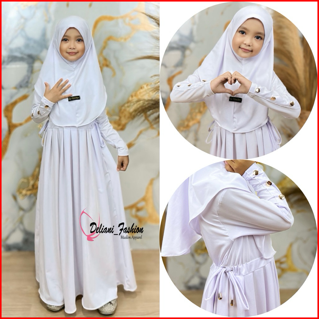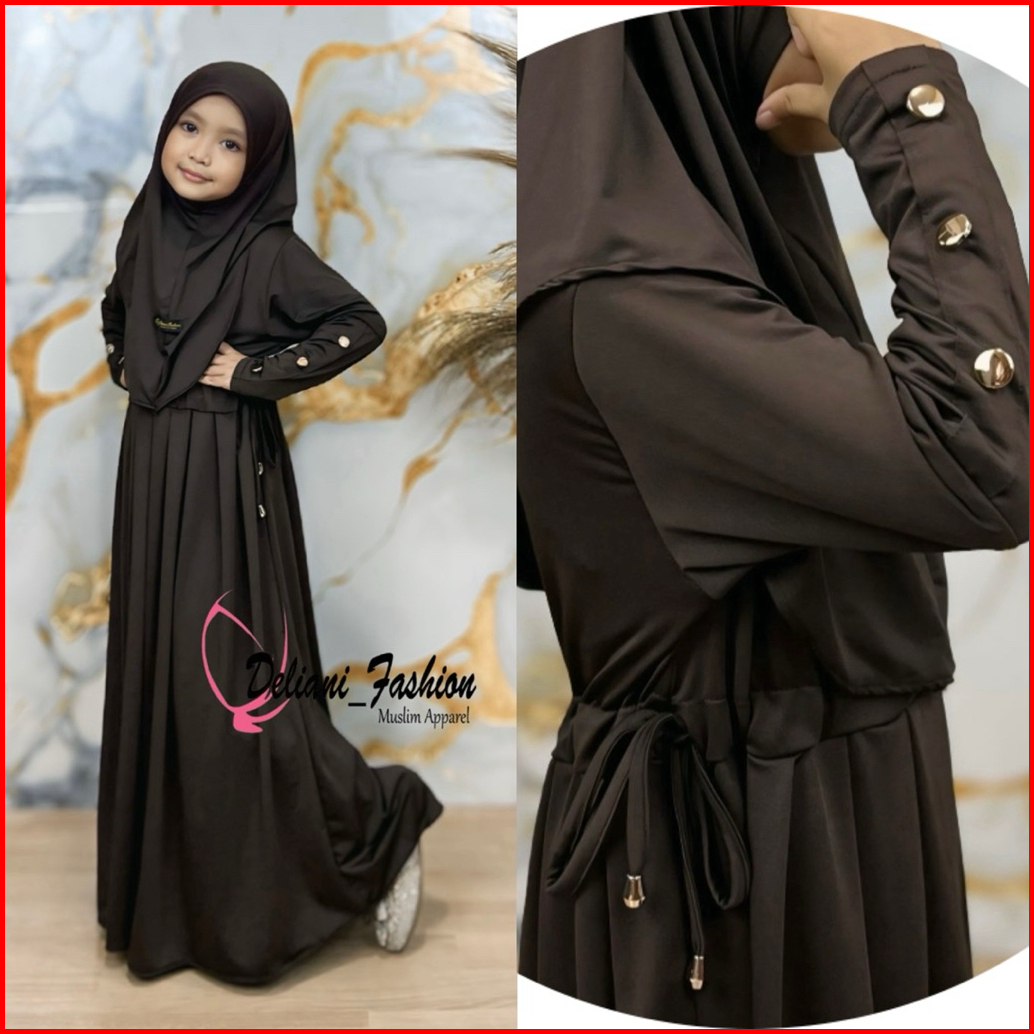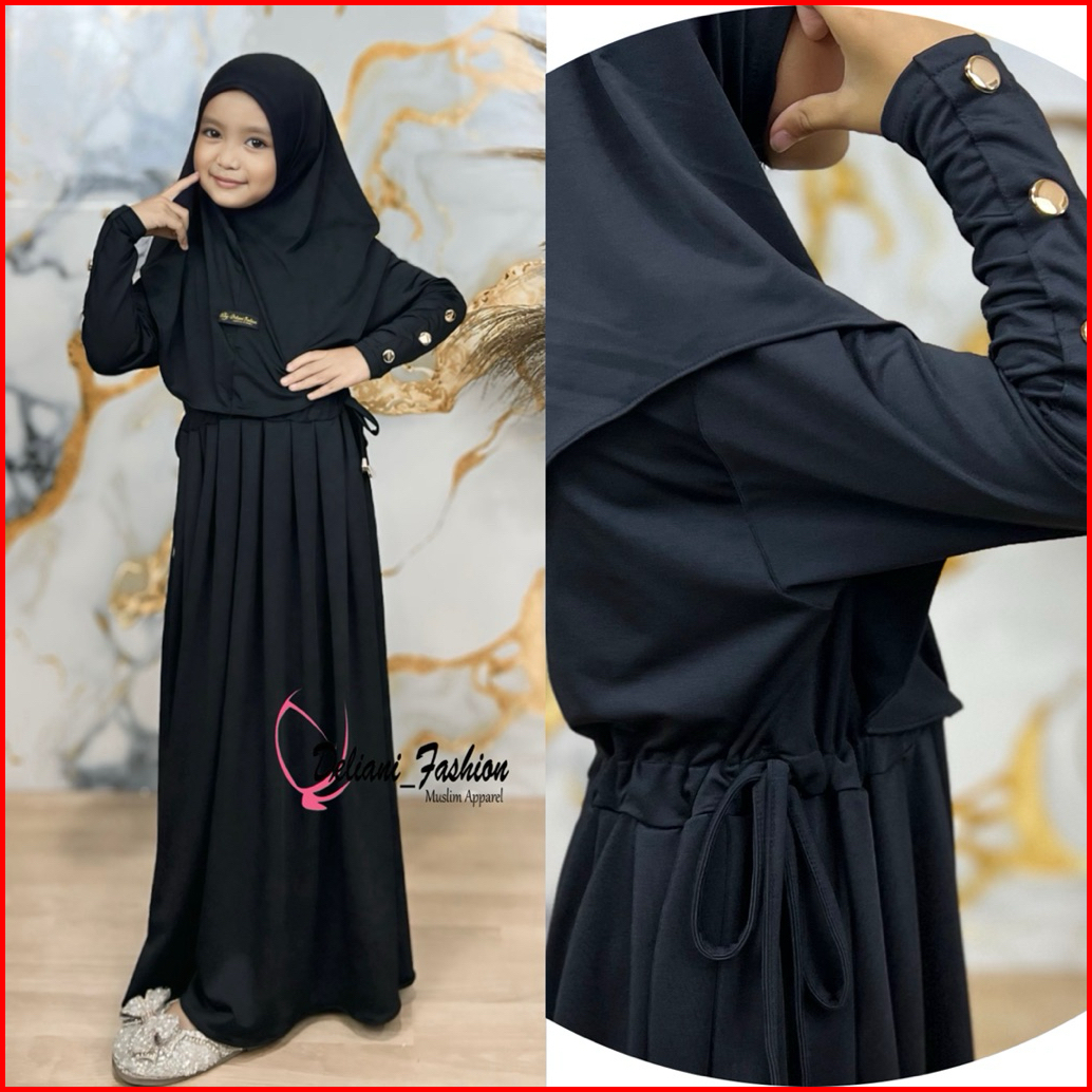 Gamis Anak Perempuan Set Hijab Abaya Serut Pinggang Inara Dress Muslim Lebaran Terbaru