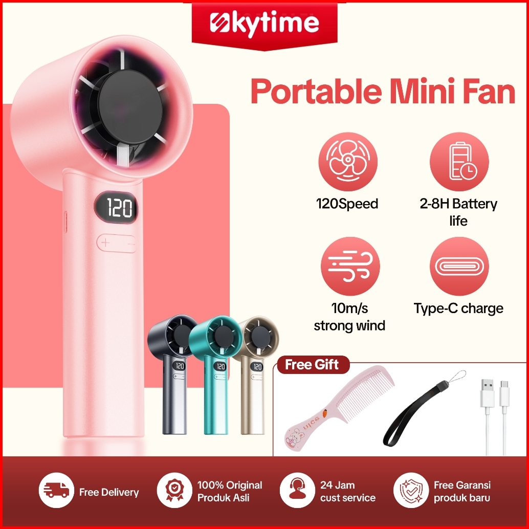Skytime Portable Fan Turbo Kipas 120 Speed Fan Usb Handheld Stand Up Desktop Fan Portable Strong Wind Digital Display Ad