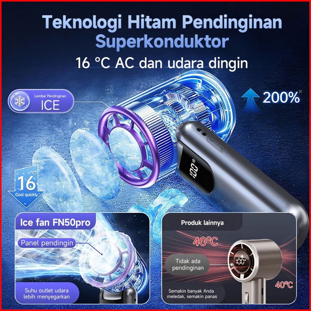 2025 Baru Jqvitek Fn50 Pro Kipas Portable High Speed Kipas 100 Gear Wind Dapat Dilipat Led Display Kipas Angin Adjustabl
