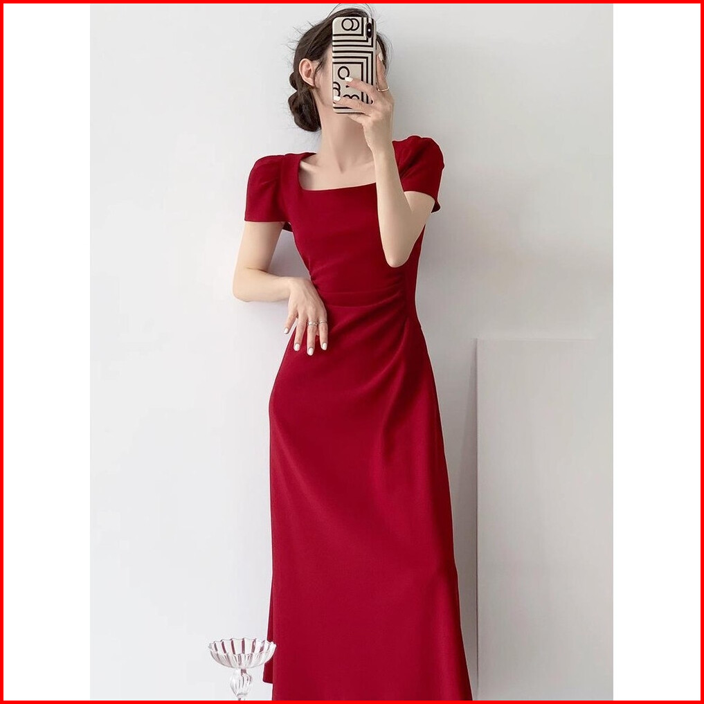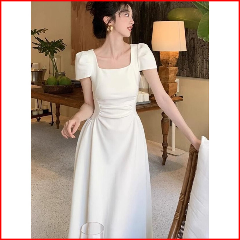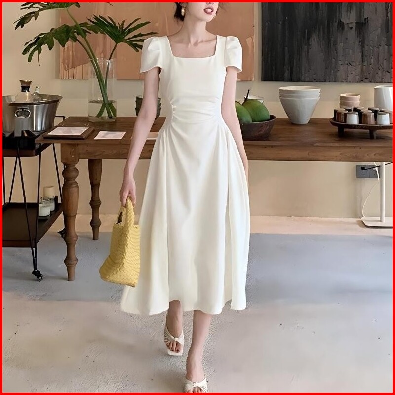 Meirong Summer Midi Dress Putih Polos Pantai Panjang Wanita Korea Style Baju White Dress Simple Elegan Formal Kondangan