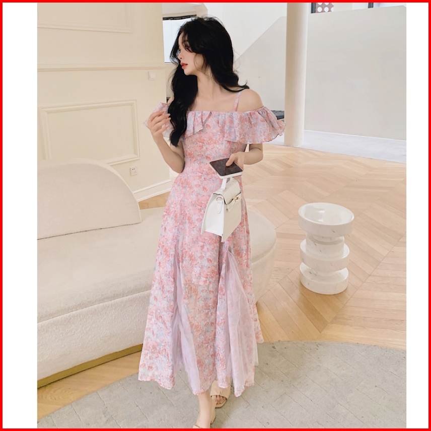 Emita Bloom Baju Flowy Midi Dress Pantai Panjang Bunga Bunga Wanita Floral Dress Biru Muda Natal Korean Style Big Size J