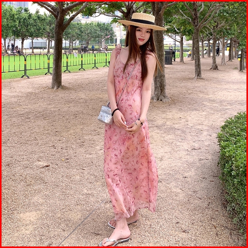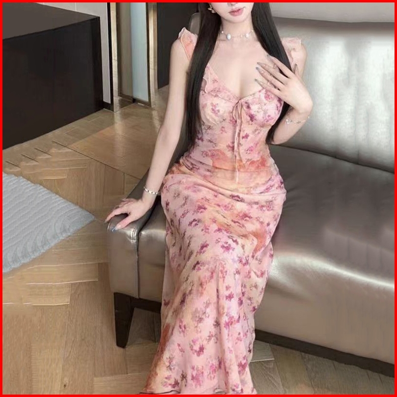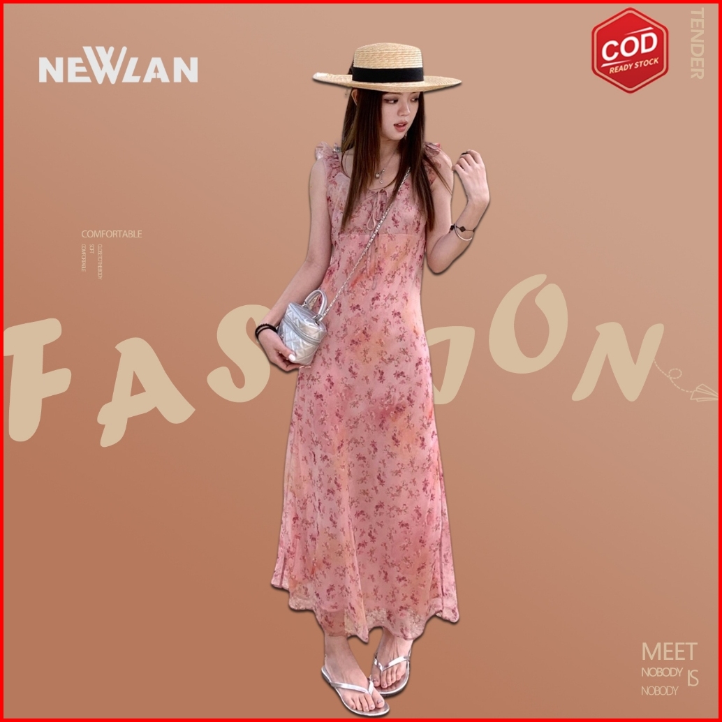Newlan Qz231 Dress Princess Maxi Dress Korean Style Elegant Dress Wanita Kekinian Fairy Dress Sexy Pantai Floral Gaun