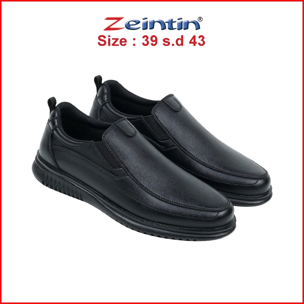 Zeintin - Sepatu Pantofel Pria Formal Slip On Kerja Kantor Full Hitam Lentur Bj