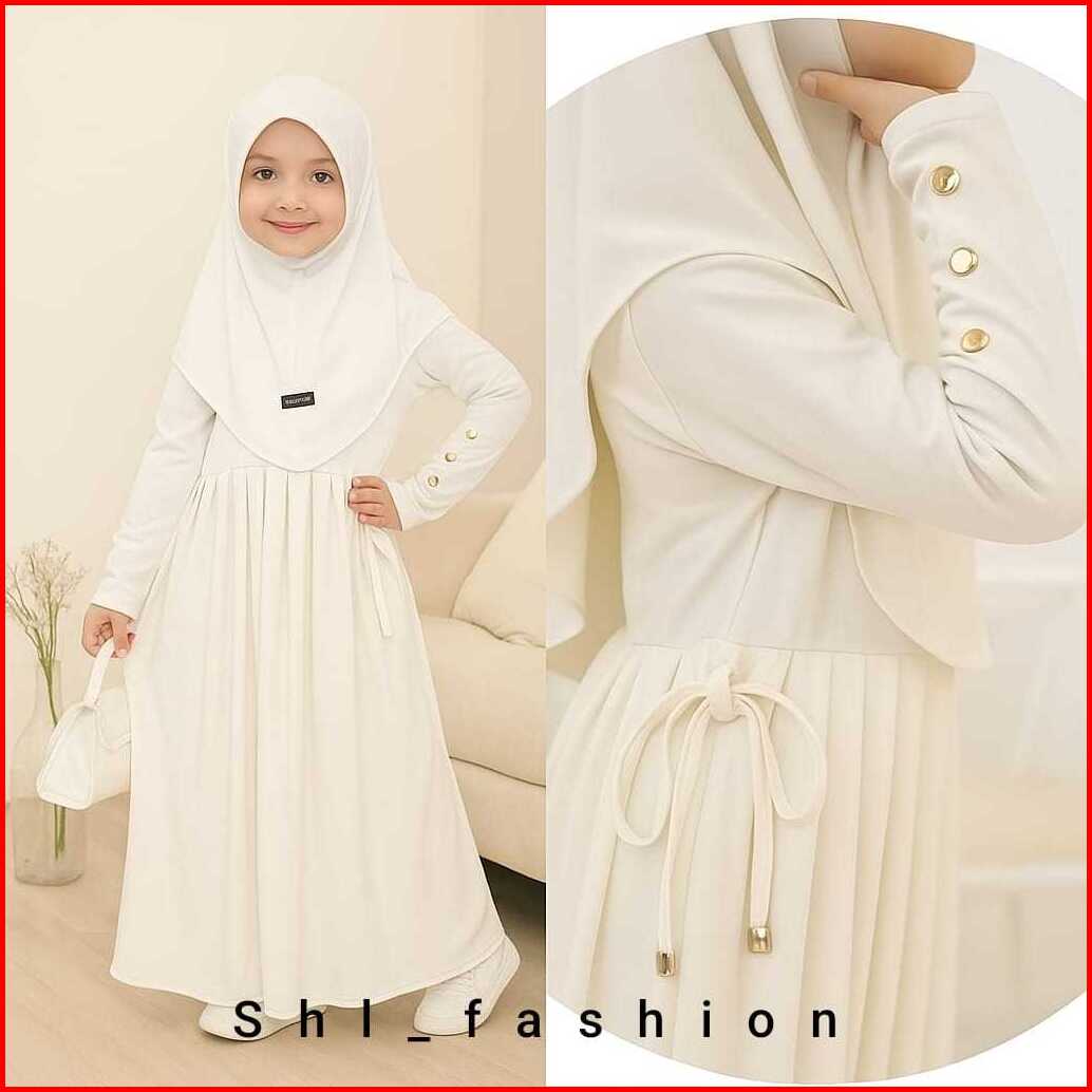 Gamis Abaya Shela Set Hijab Gamis Anak Serut Pinggang Bahan Jersey Premium Usia 1-10 Tahun