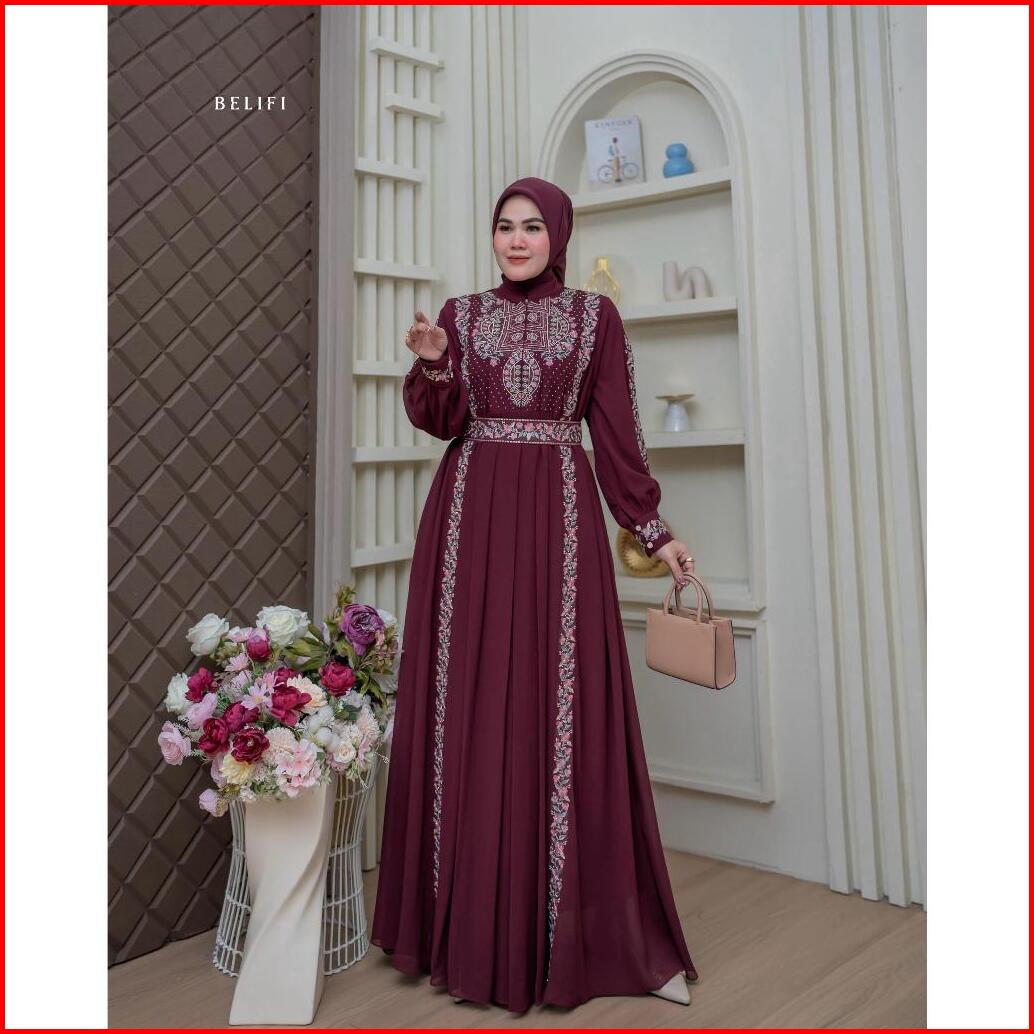 Belifi Mysha Dress Gamis Bordir Premium Dress Muslim Terbaru Casual Elegant Halus