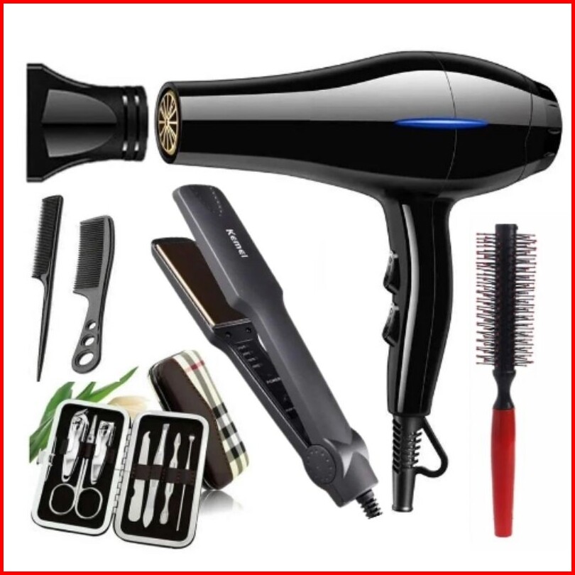 Paket Catokan Rambut Lurus Smoothing Tourmaline Ceramic Kemei Km-329 Hair Straightener Dan Hairdryer Pengering Rambut 1