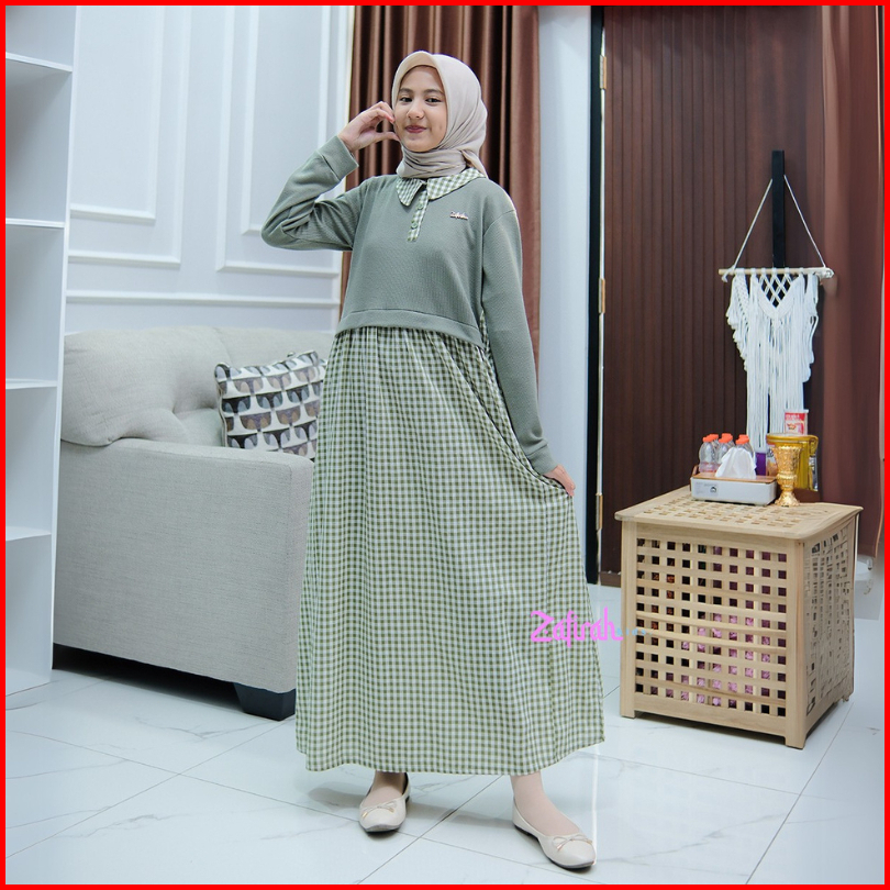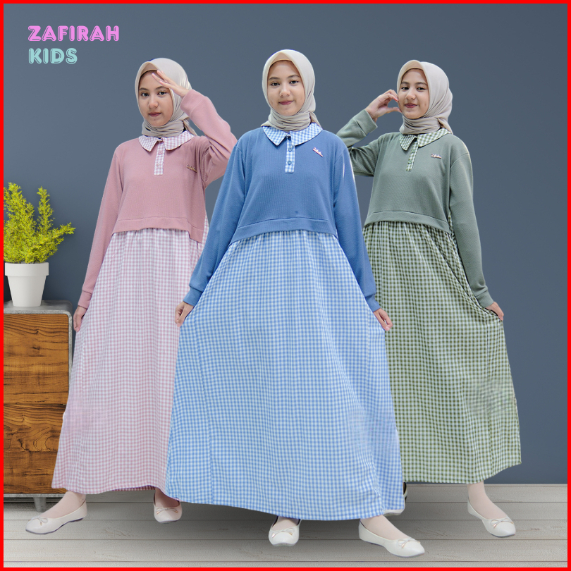Gamis Anak Perempuan Raina Dress Motif Kotak Baju Muslim Anak Tanggung Kekinian Zafirah Kids