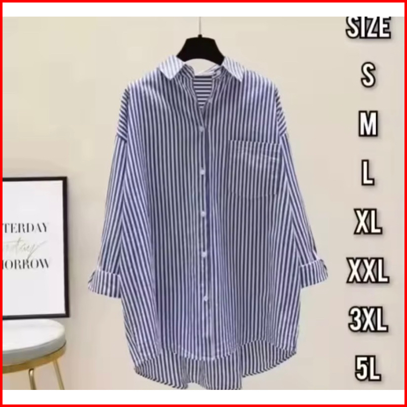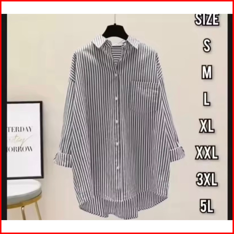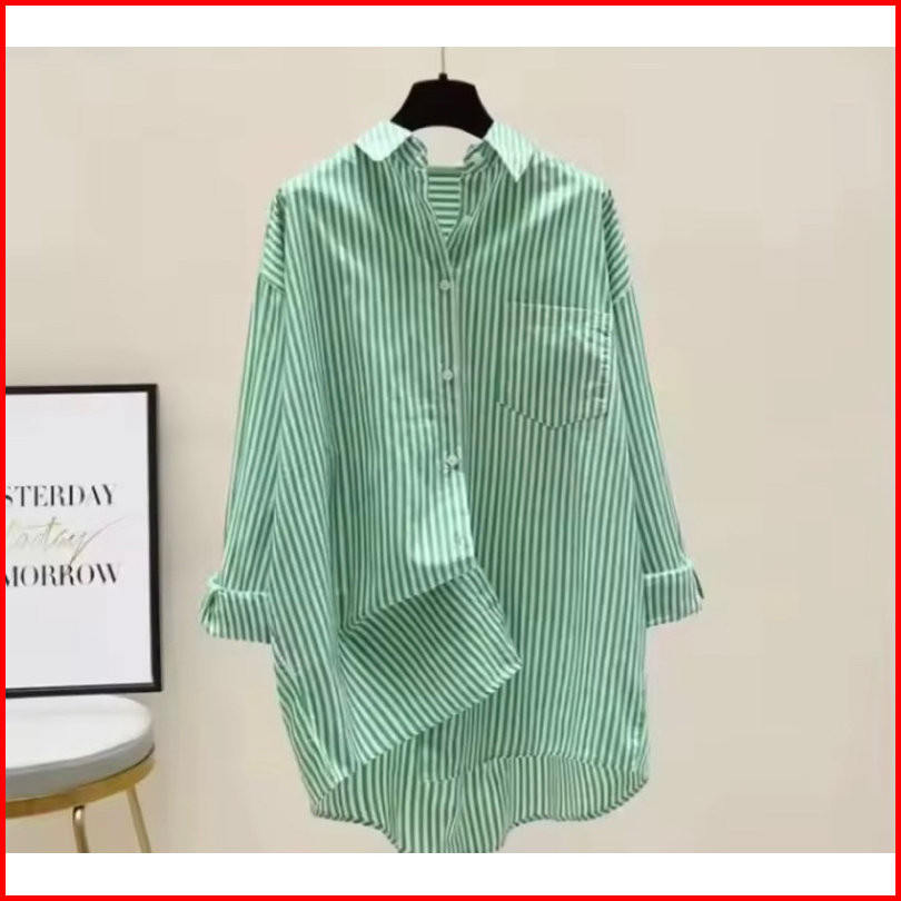 Kemeja Kain Salur Wanita Model Terbaru Paling Laris