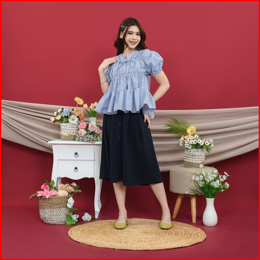 Yoenik Apparel Foila Rubber Blouse Atasan Kerut Dada Korean Style Wanita Kekinian